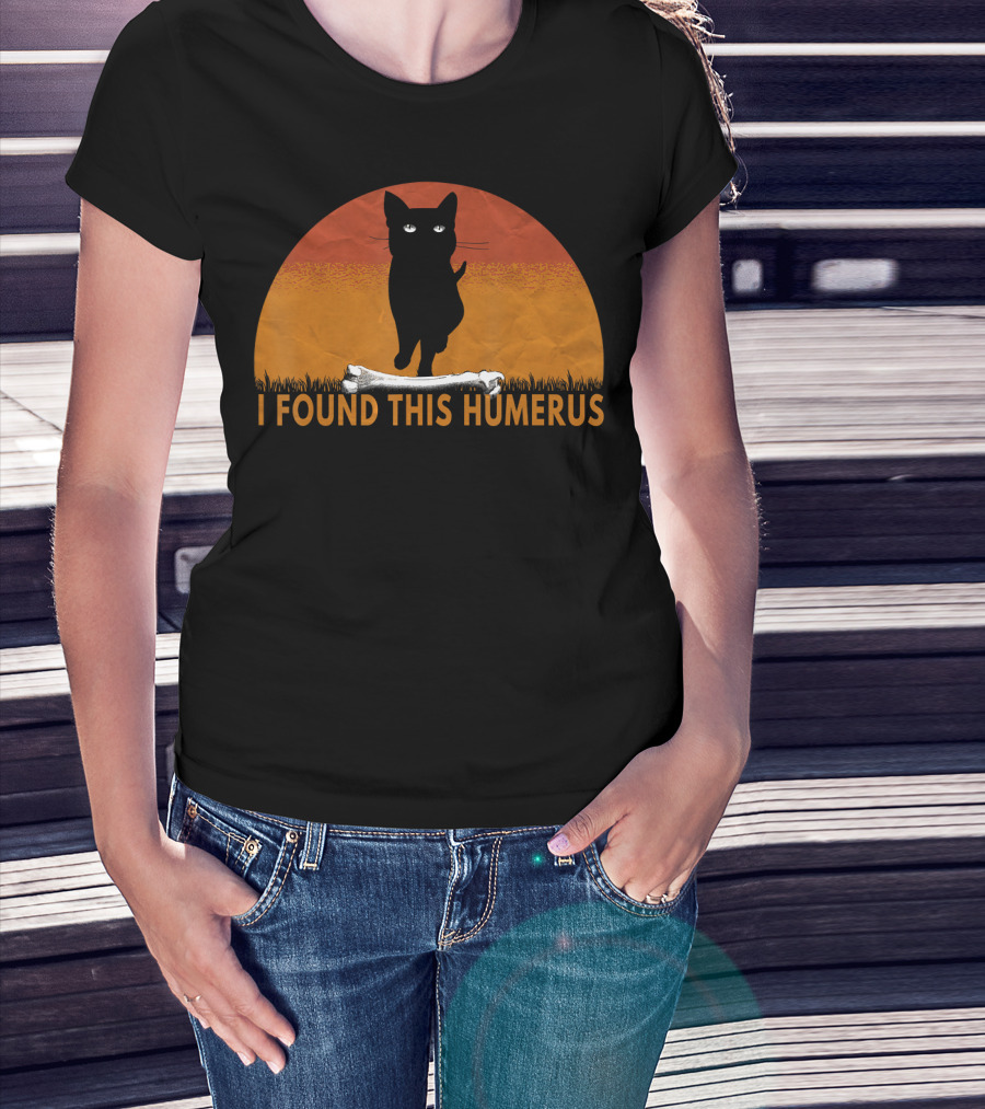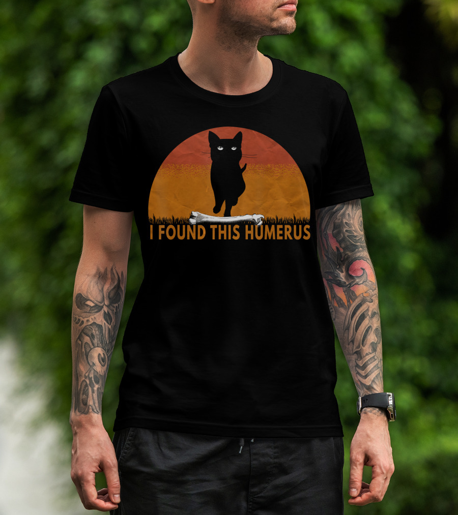I Found This Humerus Cats Humorous Cat Lovers Bone Pawprint Sunset T-Shirt