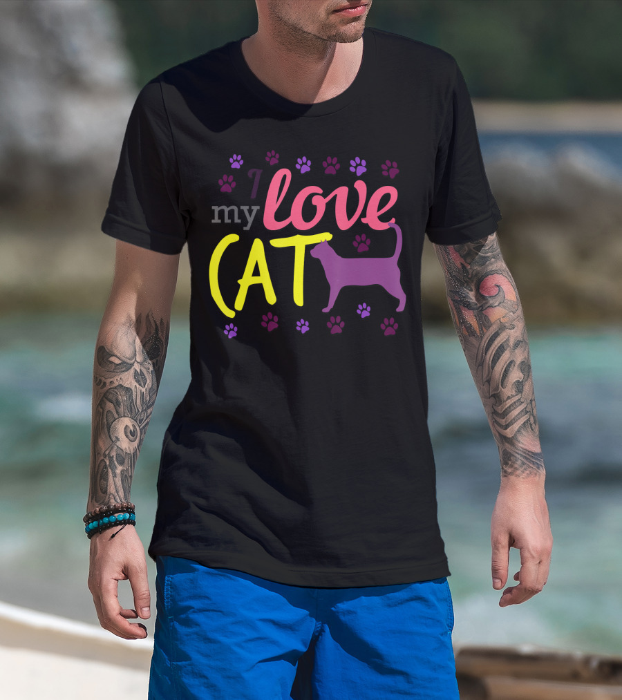 I Love My Cat Feline Owner Cute Pet Purple Paw Prints T-Shirt