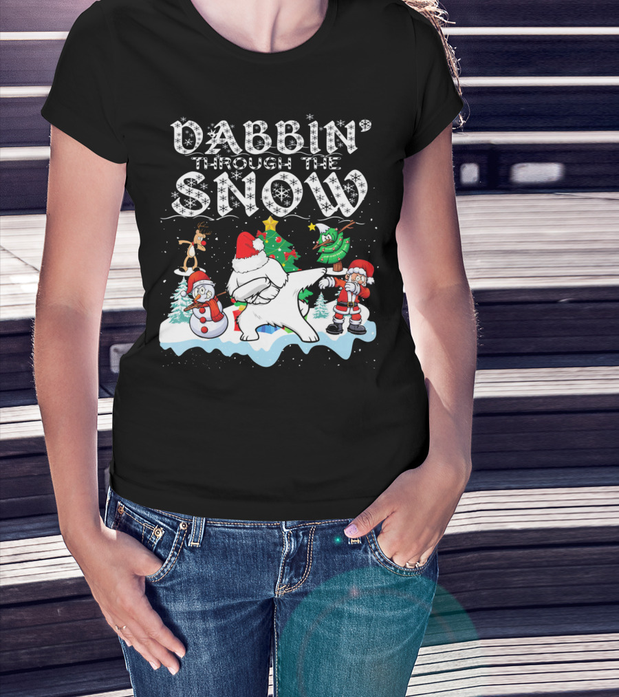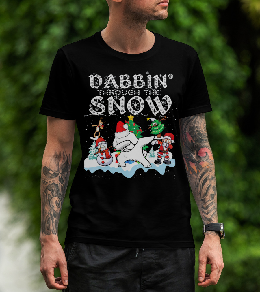 Dabbin Through The Snow Santa Maltese Dog Snowman Christmas Tree T-Shirt