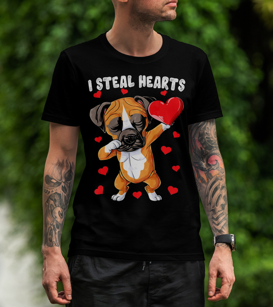 Dabbing Boxer Dog Holding Red Heart I Steal Hearts T-Shirt