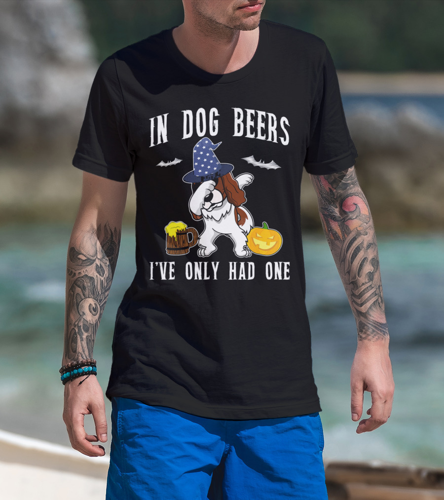 In Dog Beers I've Only Had One Dabbing Cavalier King Charles Spaniel Halloween Wizard Hat Pumpkin T-Shirt