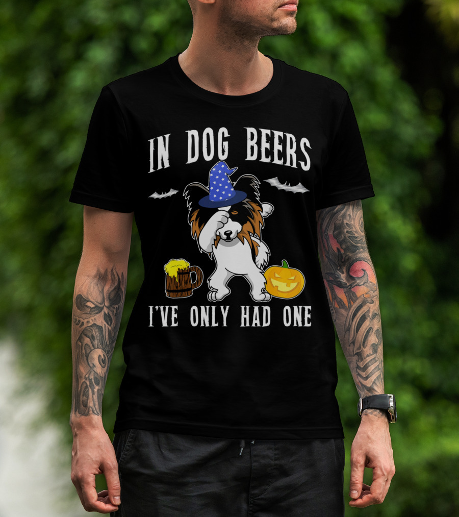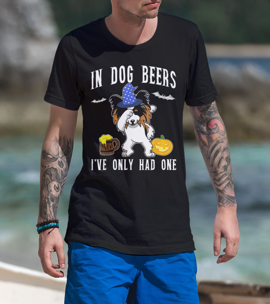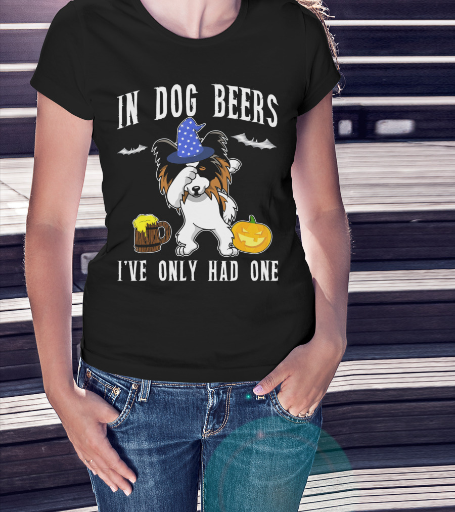 In Dog Beers I've Only Had One Halloween Papillon With Witch Hat And Beer Mug T-Shirt