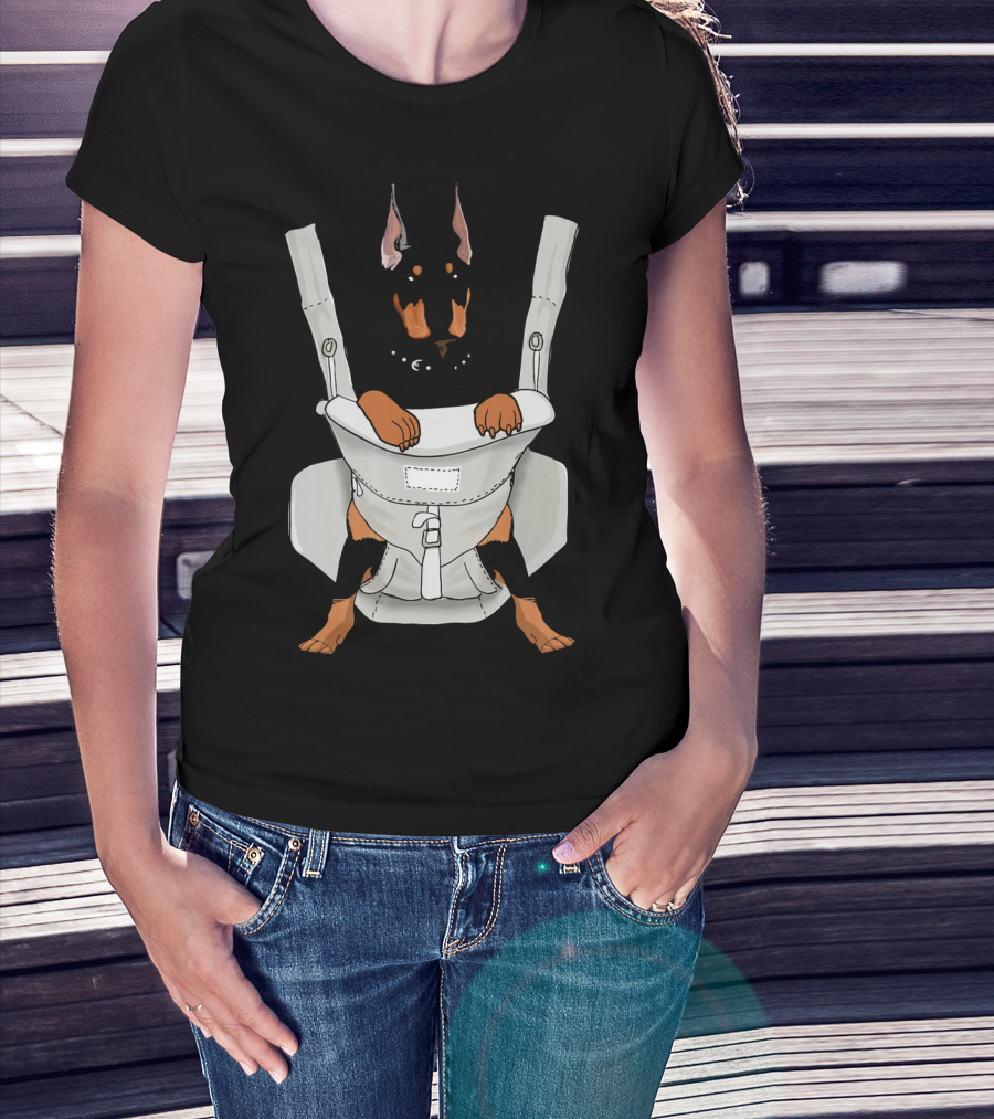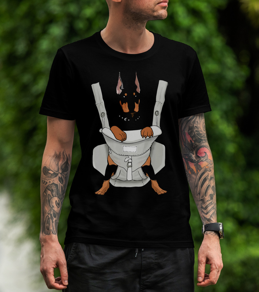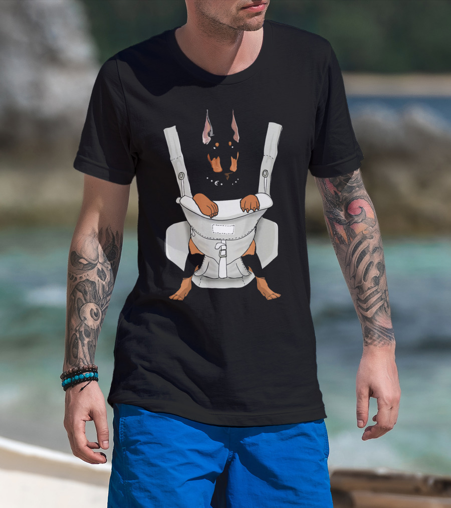 Carrier Doberman With Cartoon Baby Harness T-Shirt