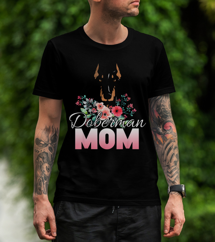 Doberman Mom Floral T-Shirt