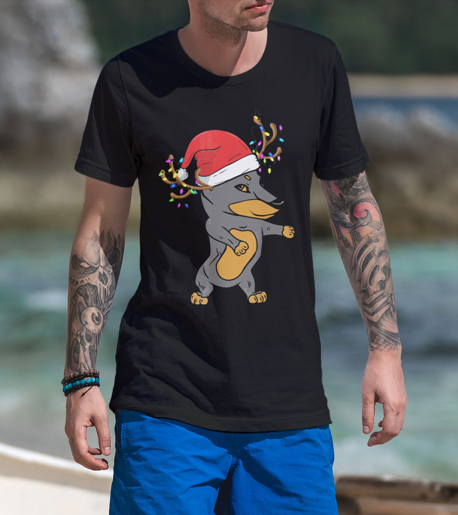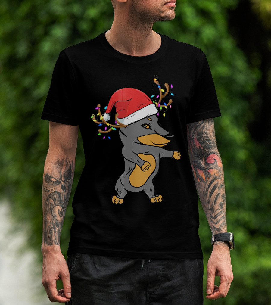 Christmas Doberman Santa Hat Reindeer Antlers Lights Dog Lovers T-Shirt