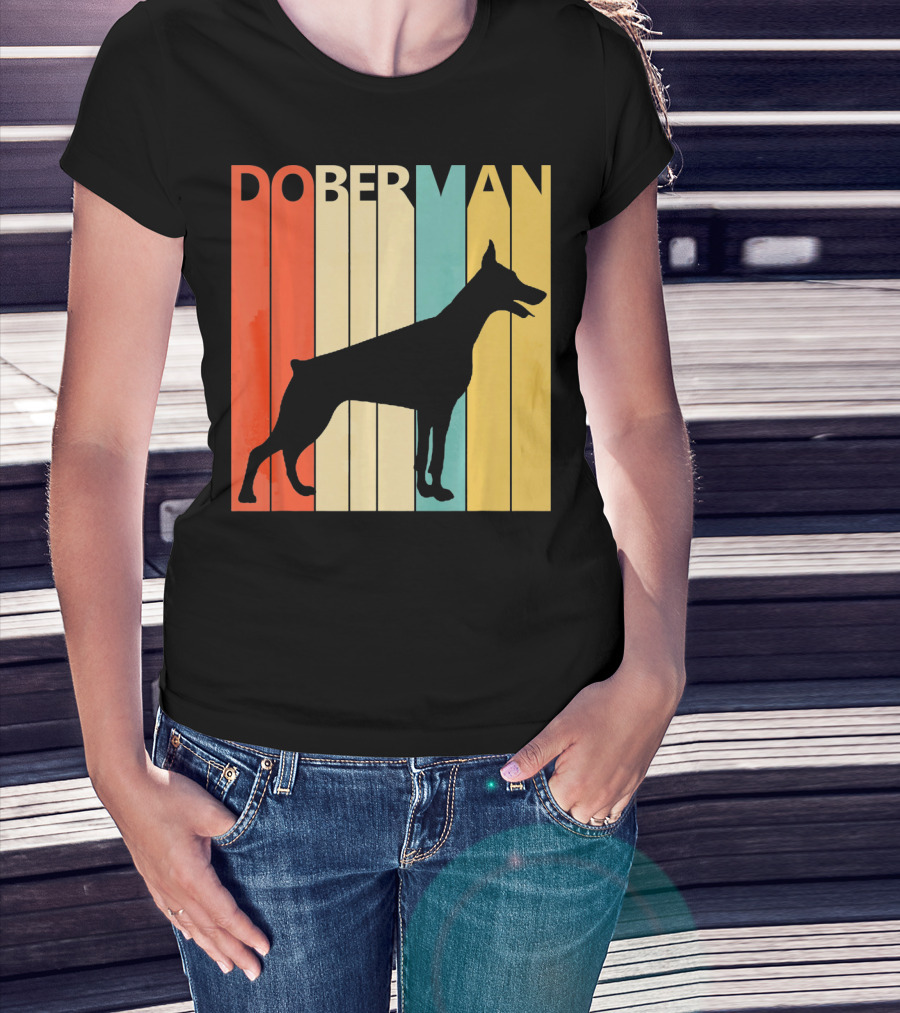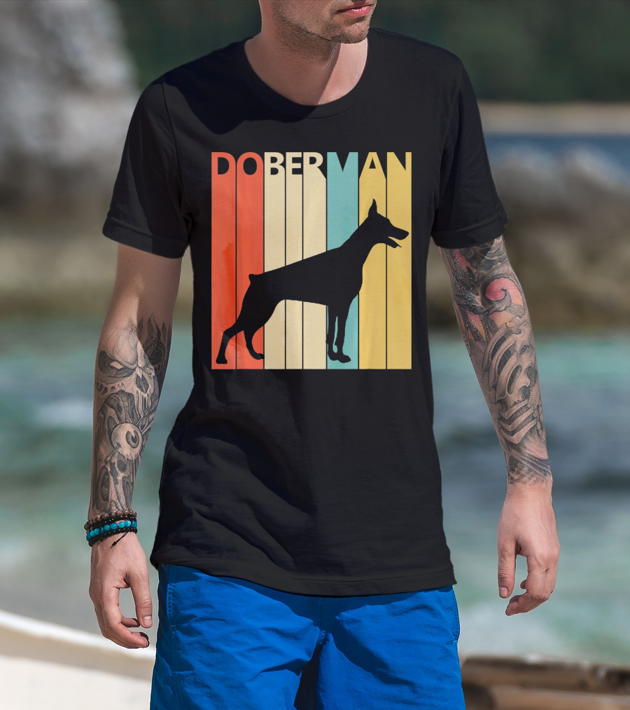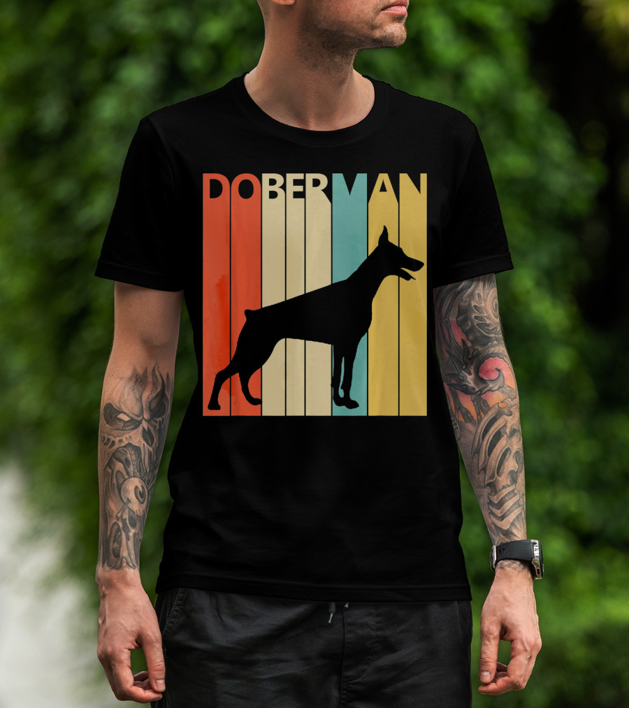 Doberman Vintage Silhouette Stripes For Dog Dad T-Shirt