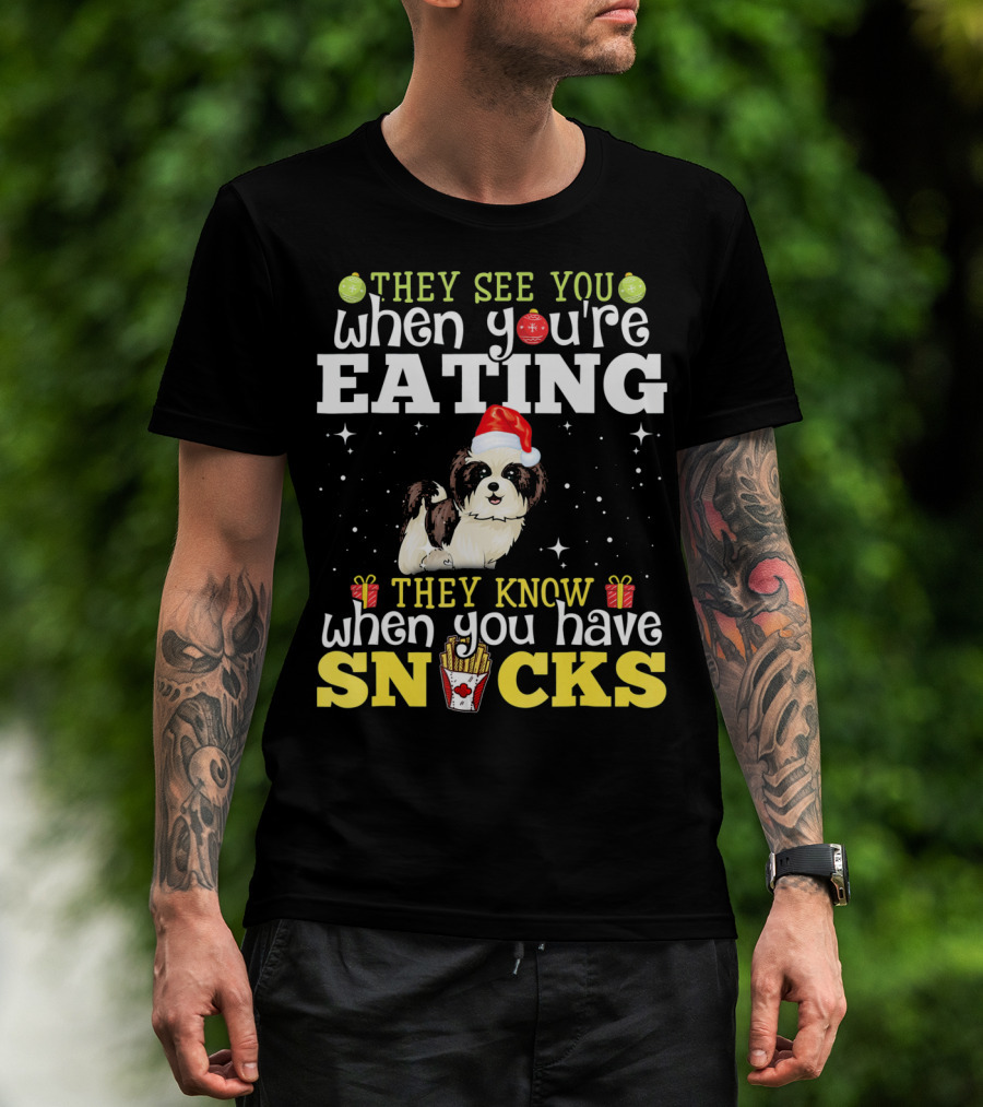 They See You When You’re Eating They Know When You Have Snacks Shih Tzu Christmas Dog Xmas T-Shirt