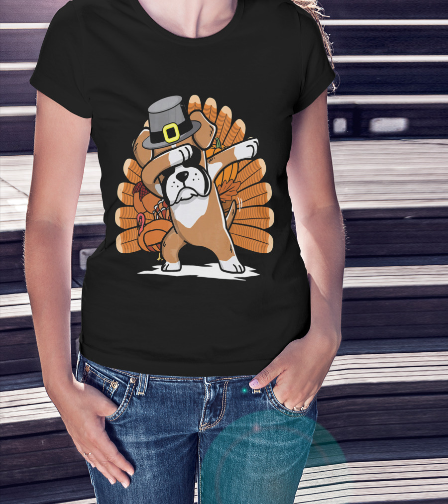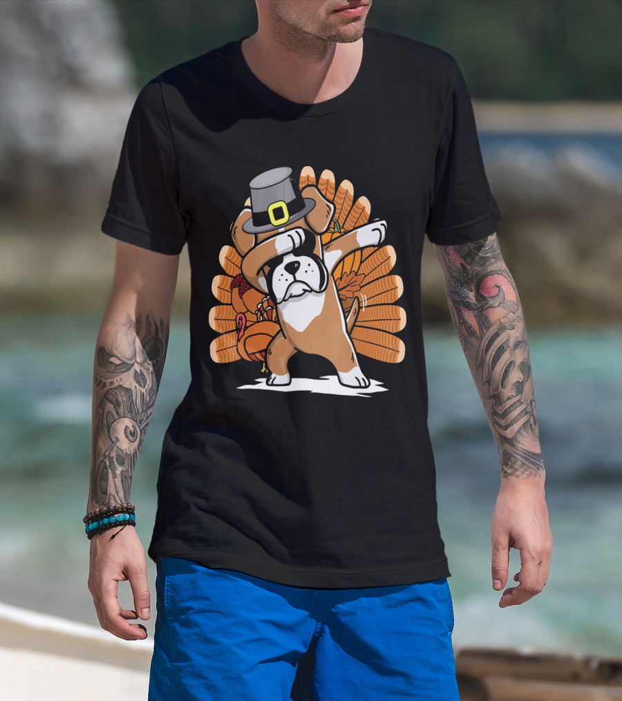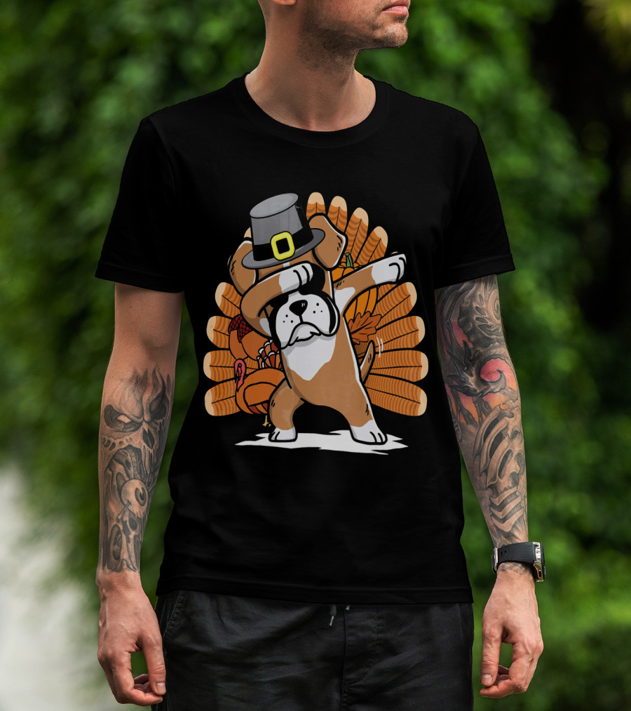 Thanksgiving Dabbing Boxer Dog Pilgrim Hat Turkey T-Shirt