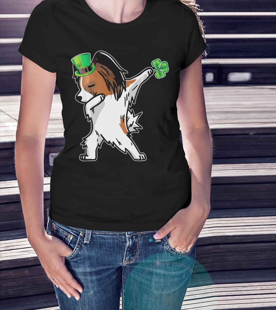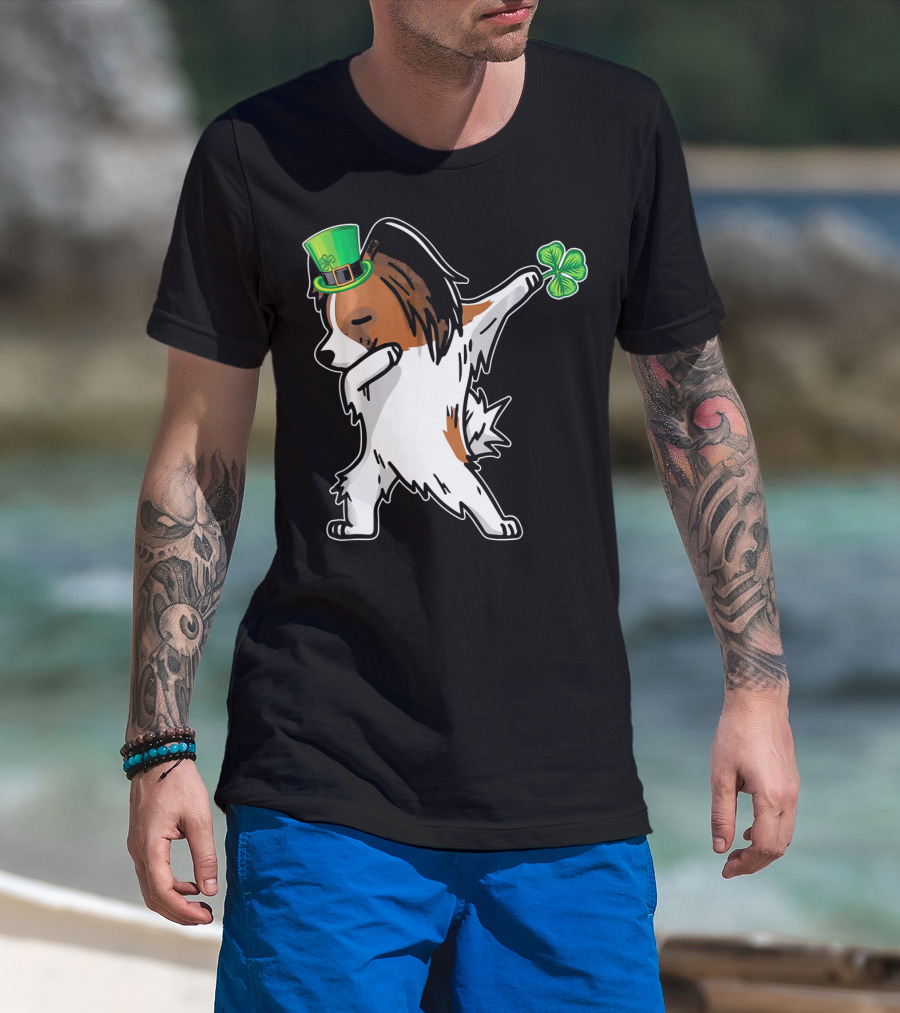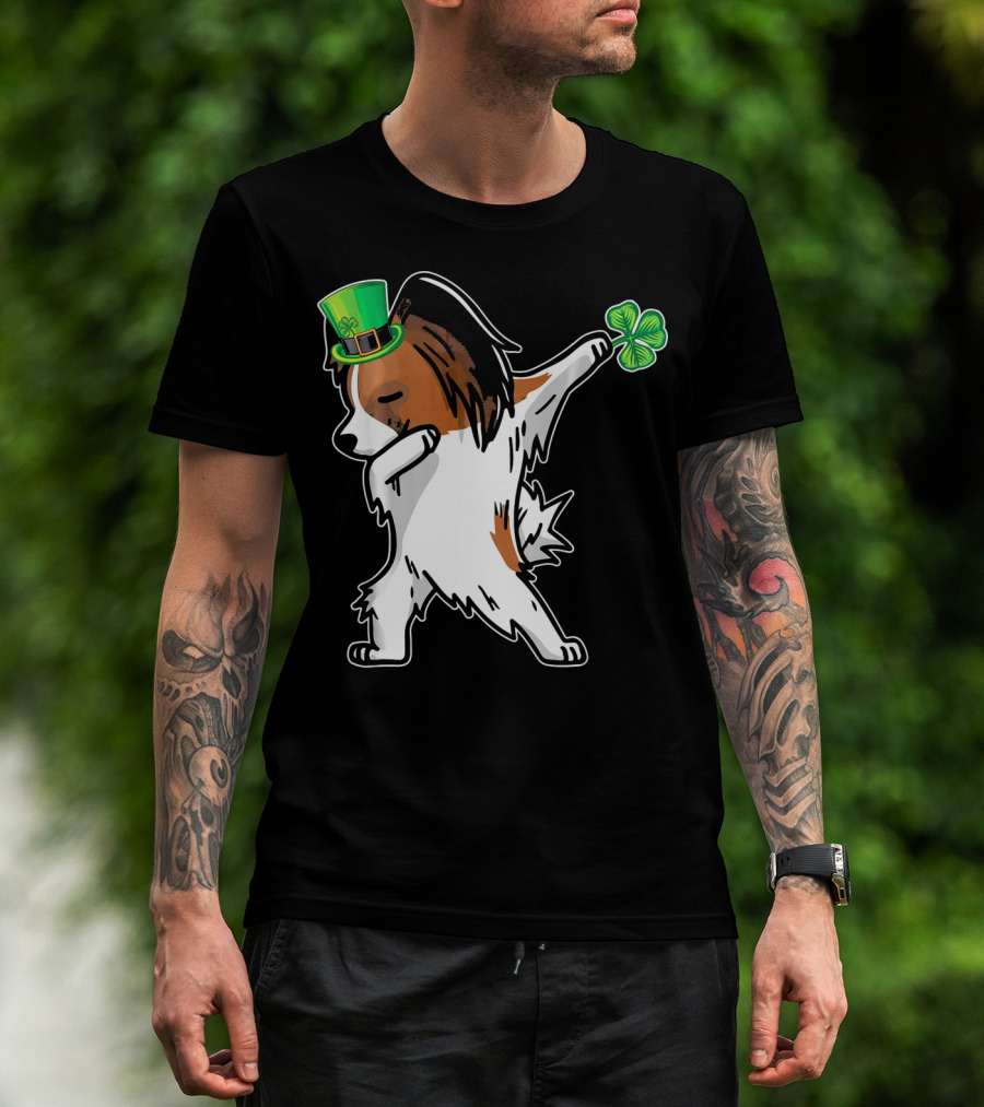 Papillon Dab Dabbing Dance With Shamrock And Leprechaun Hat T-Shirt