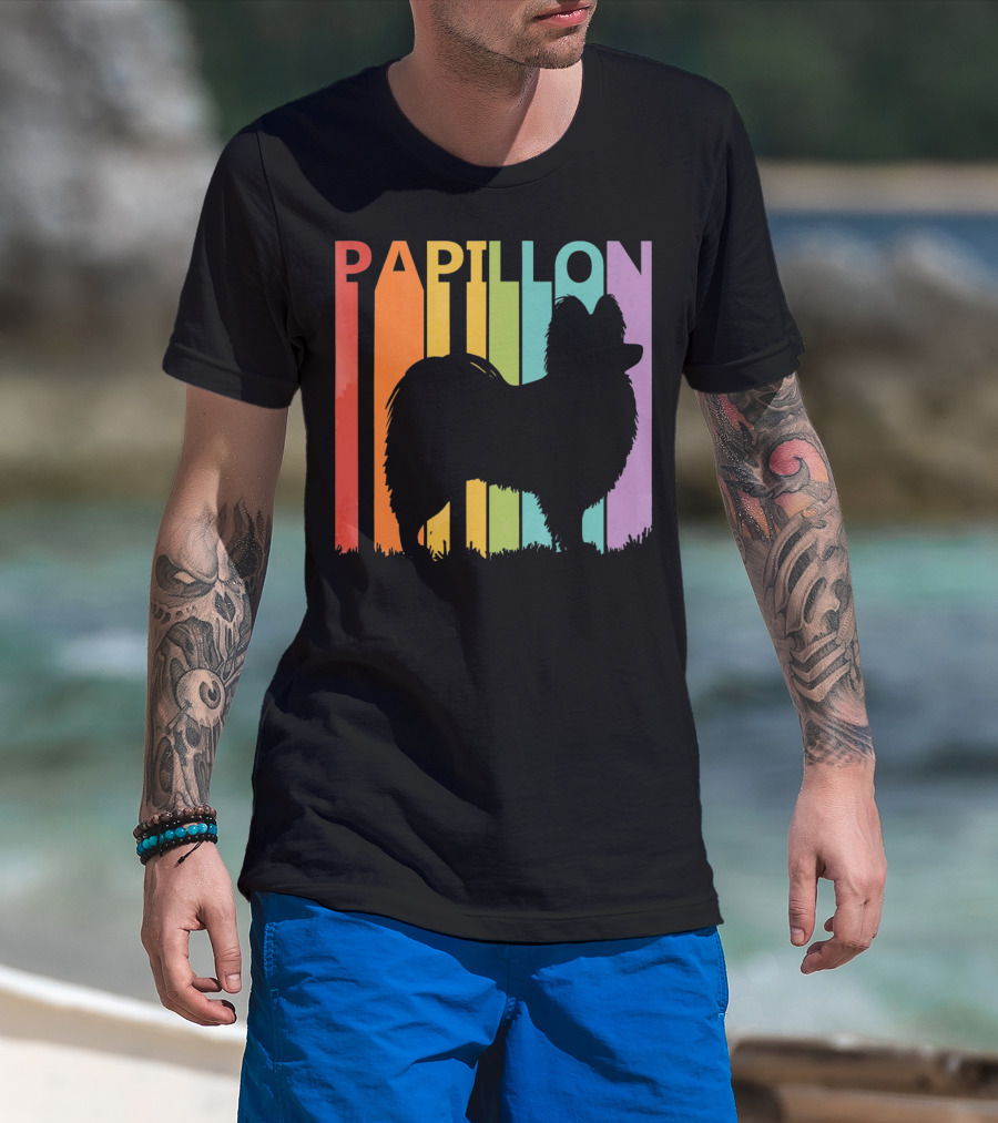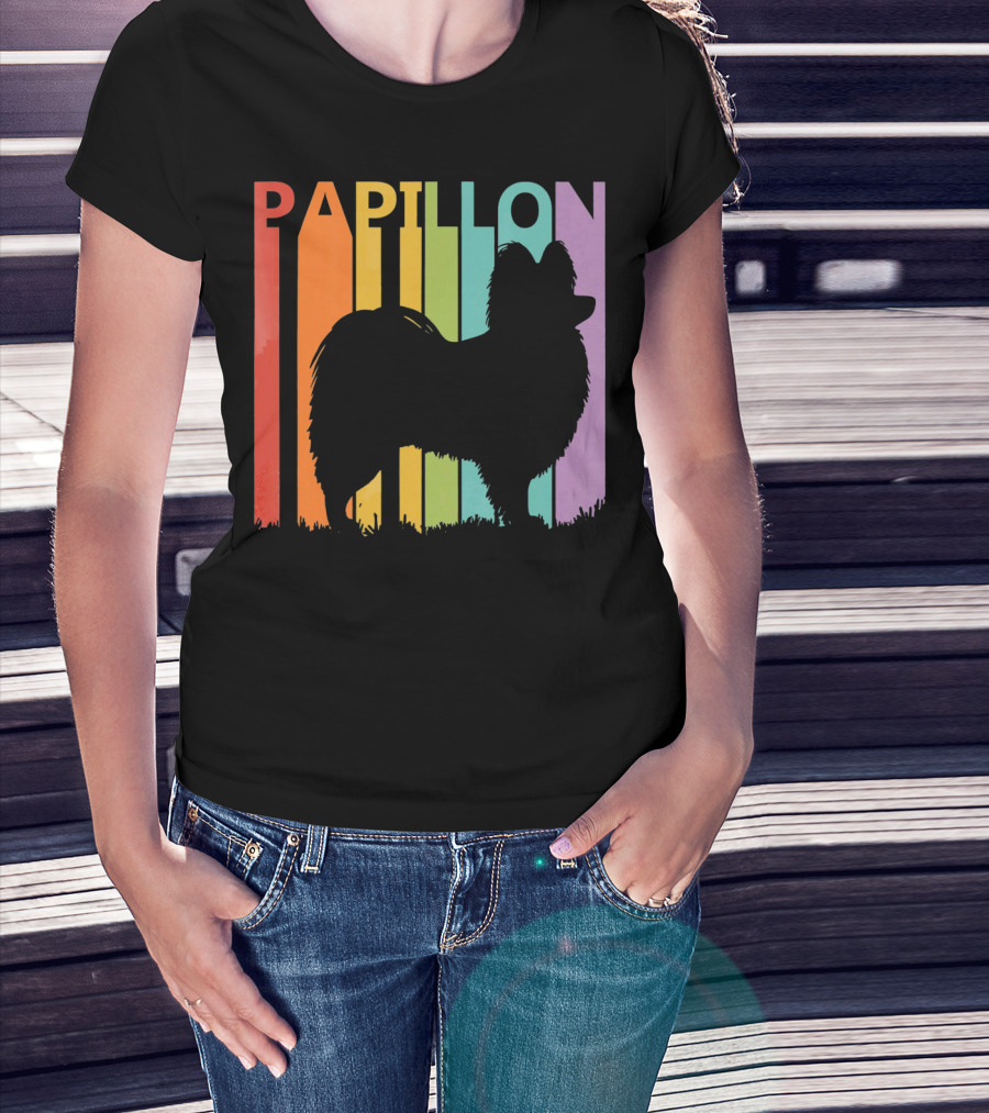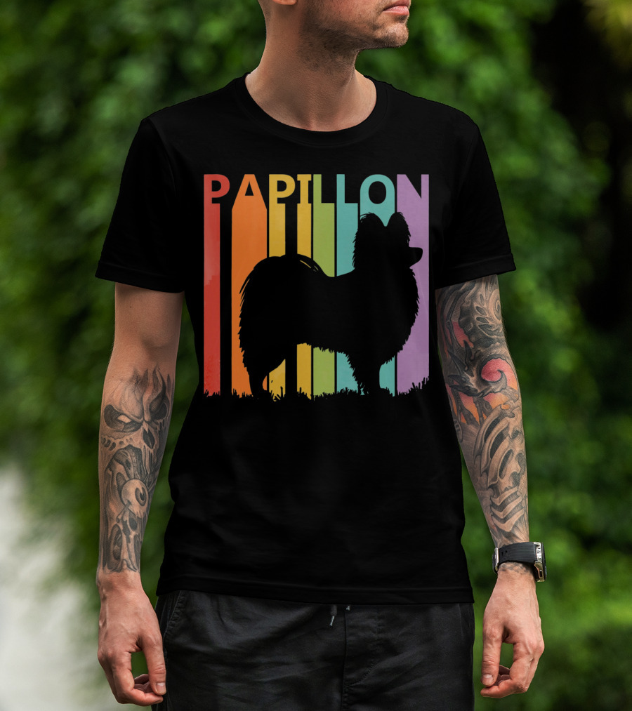 The Papillon Dog Silhouette with Colorful T-shirt is designed for everyday wear and a consistent fit. Fabric is pre-shrunk ring-spun cotton with durable stitching. See the size chart below for exact measurements.