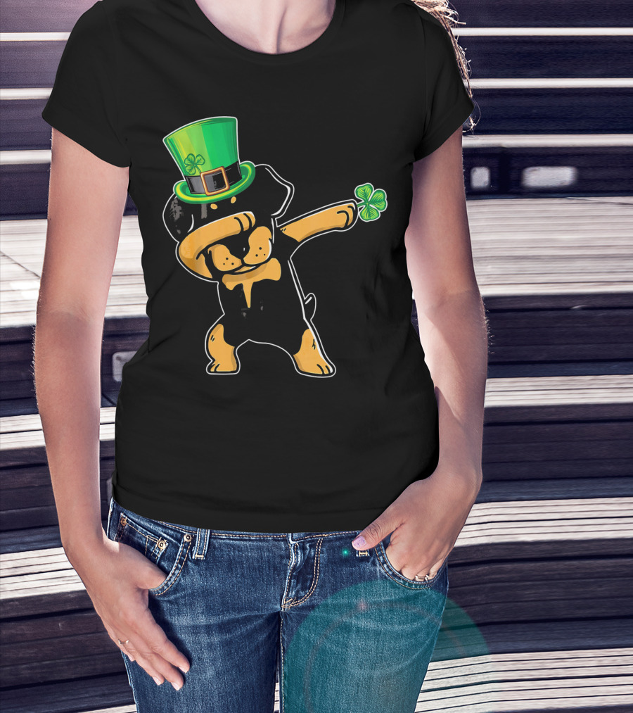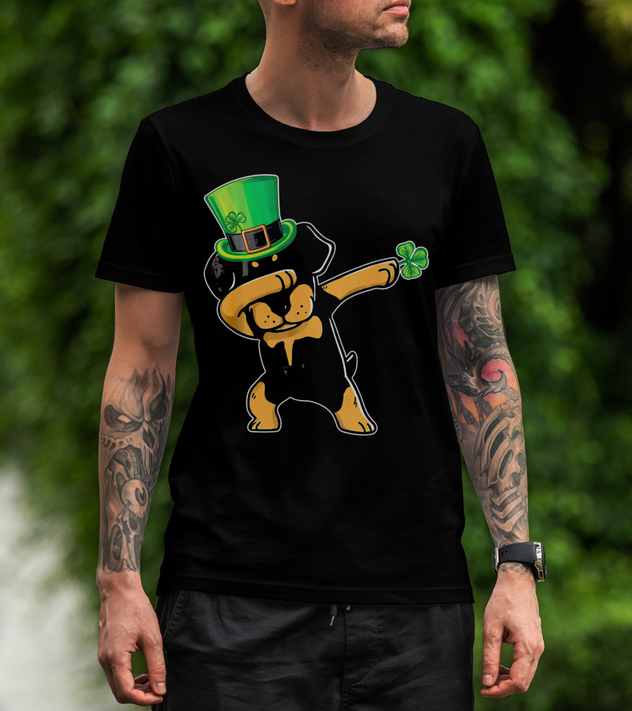 Funny St. Patrick's Day Rottweiler Dab Dabbing Dance With Green Hat And Shamrock T-Shirt