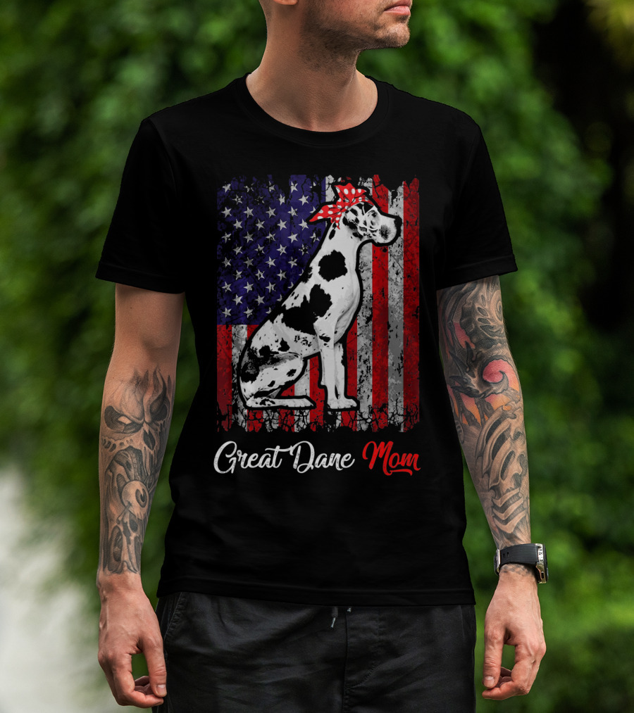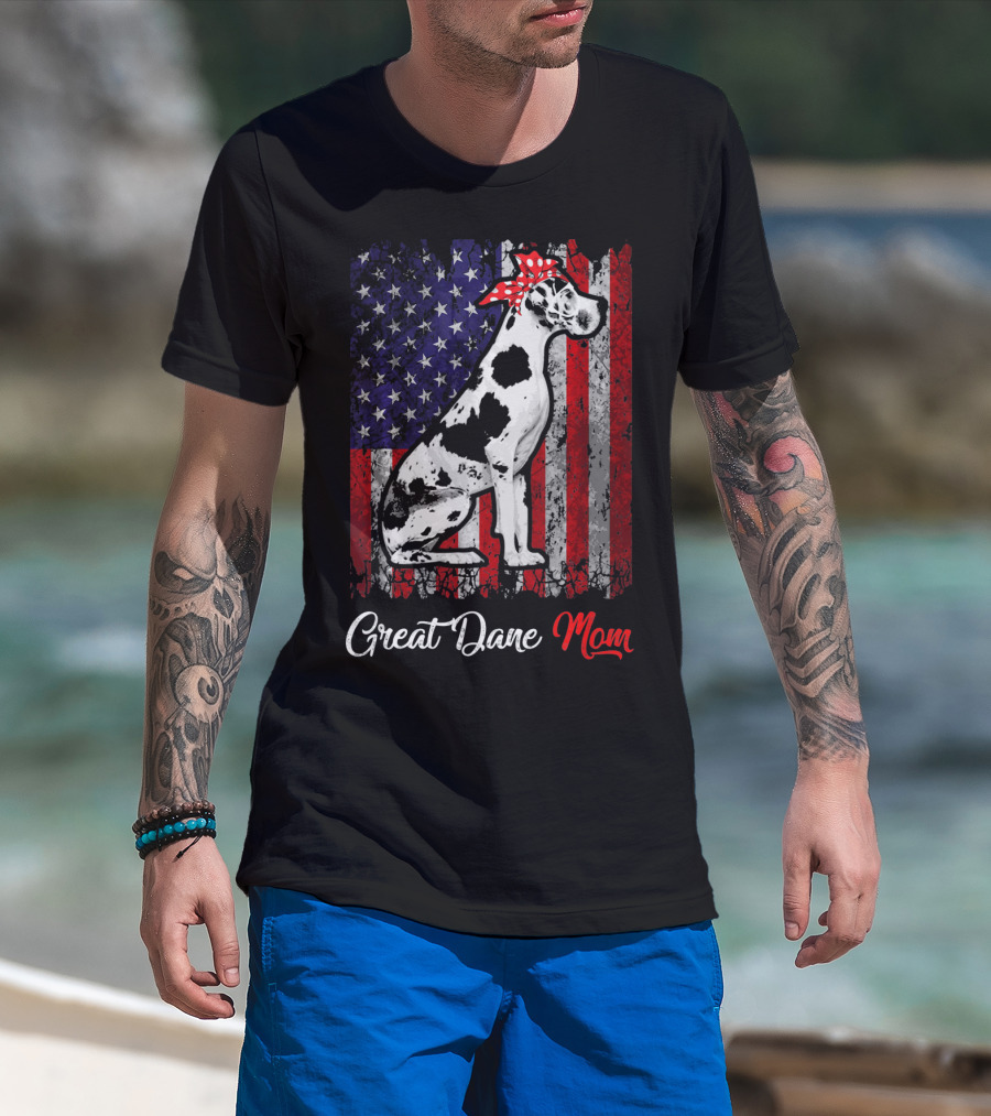 Great Dane Mom Patriotic USA Flag T-Shirt