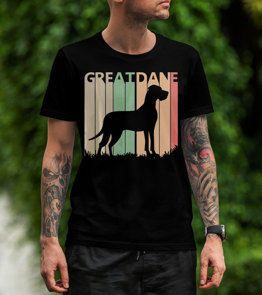 The Great Dane Valentine Vintage Silhouette for Him T-shirt is designed for everyday wear and a consistent fit. Fabric is pre-shrunk ring-spun cotton with durable stitching. See the size chart below for exact measurements.