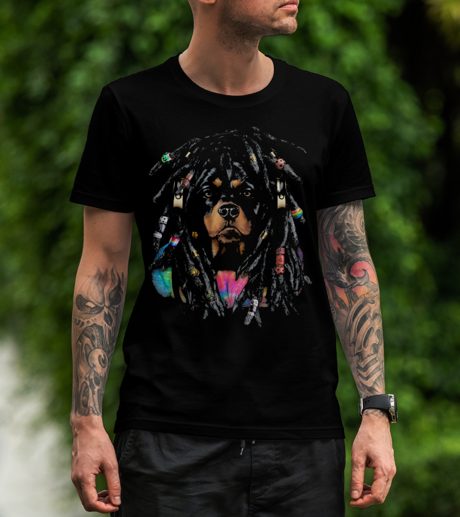 Rottweiler Dog With Dreadlocks Wearing Reggae Accessories T-Shirt