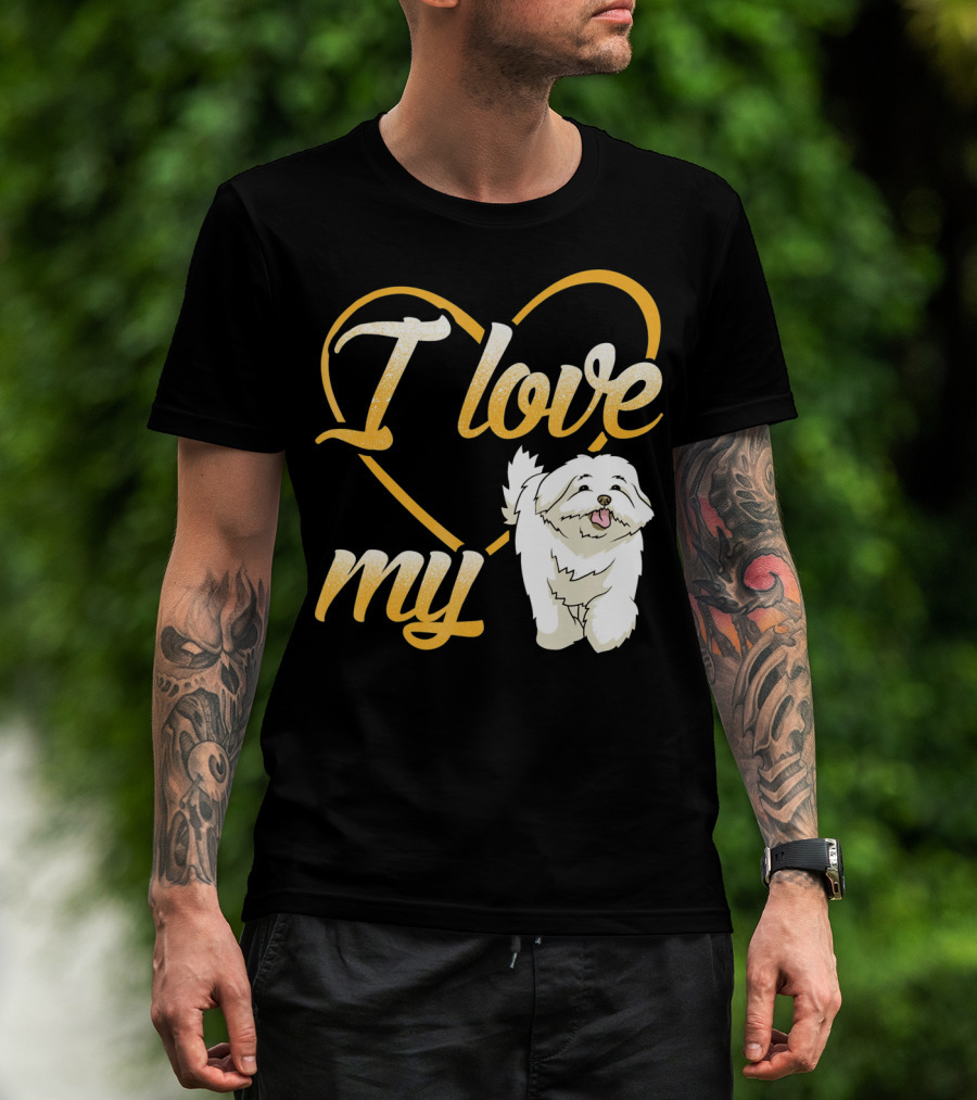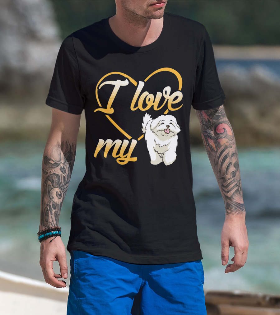 The I Love My Maltese Dog Heart T-shirt is designed for everyday wear and a consistent fit. Fabric is pre-shrunk ring-spun cotton with durable stitching. See the size chart below for exact measurements.