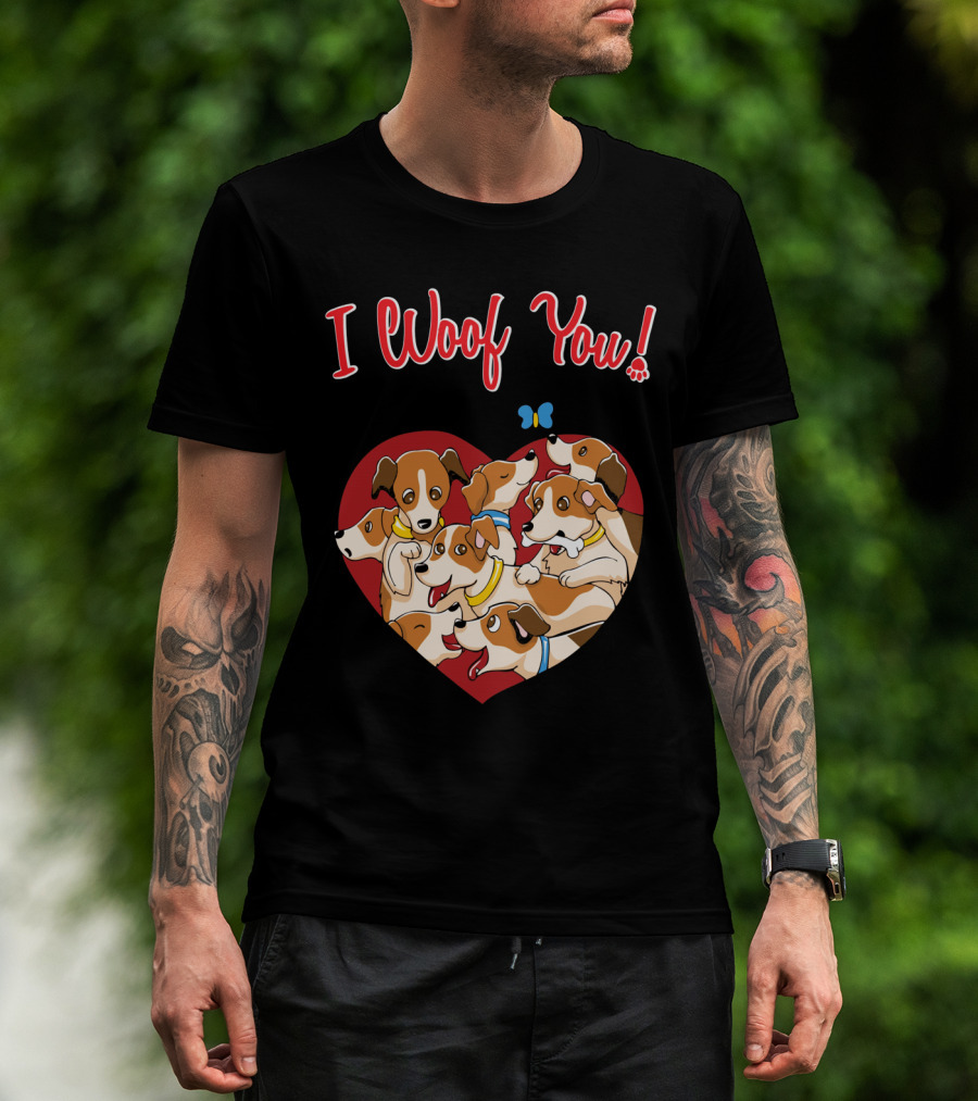 I Woof You Jack Russell Terrier Valentines Day Heart Puppies T-Shirt