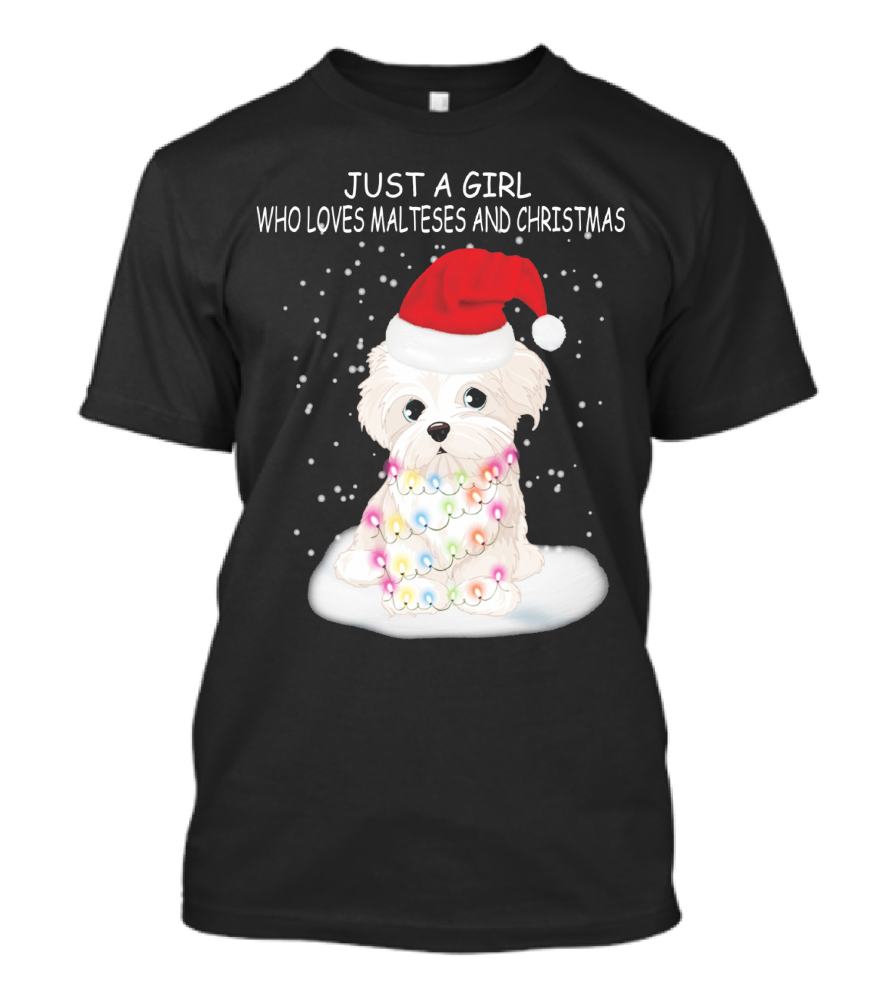 The Just A Girl Who Loves Malteses and Christmas Santa Hat Lights T-shirt is designed for everyday wear and a consistent fit. Fabric is pre-shrunk ring-spun cotton with durable stitching. See the size chart below for exact measurements.