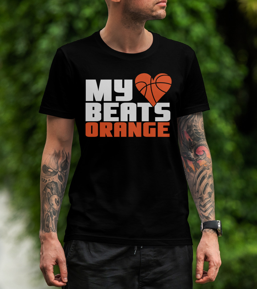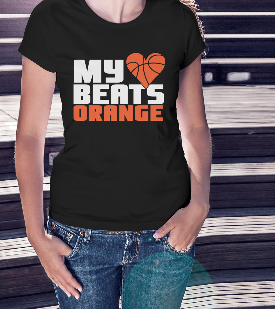 The My Heart Beats Orange Basketball T-shirt is designed for everyday wear and a consistent fit. Fabric is pre-shrunk ring-spun cotton with durable stitching. See the size chart below for exact measurements.