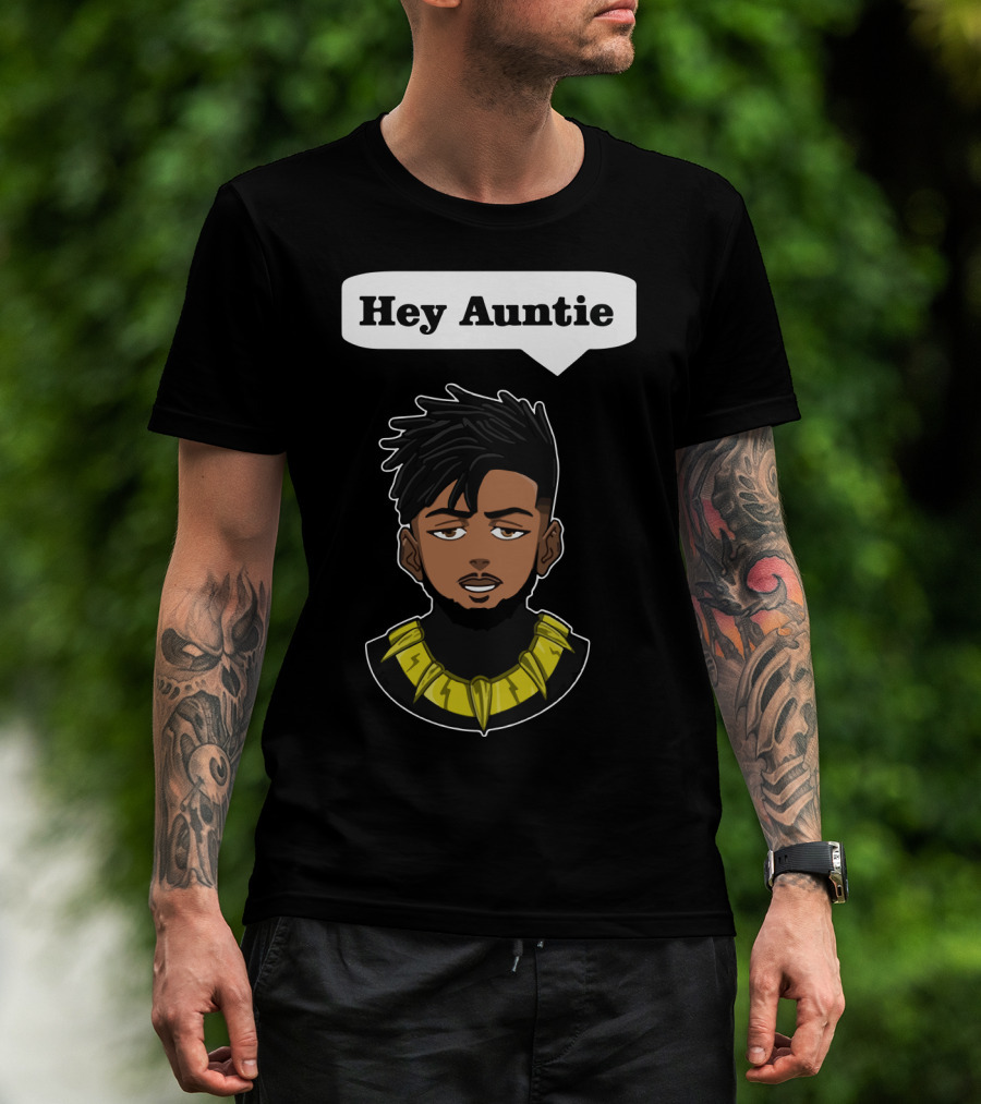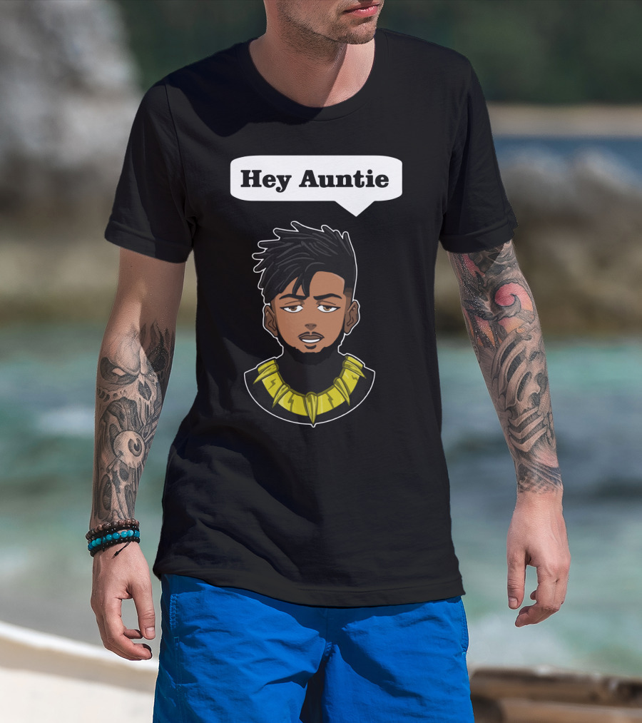 Erik Killmonger Hey Auntie Animated Character Necklace Black Panther T-Shirt