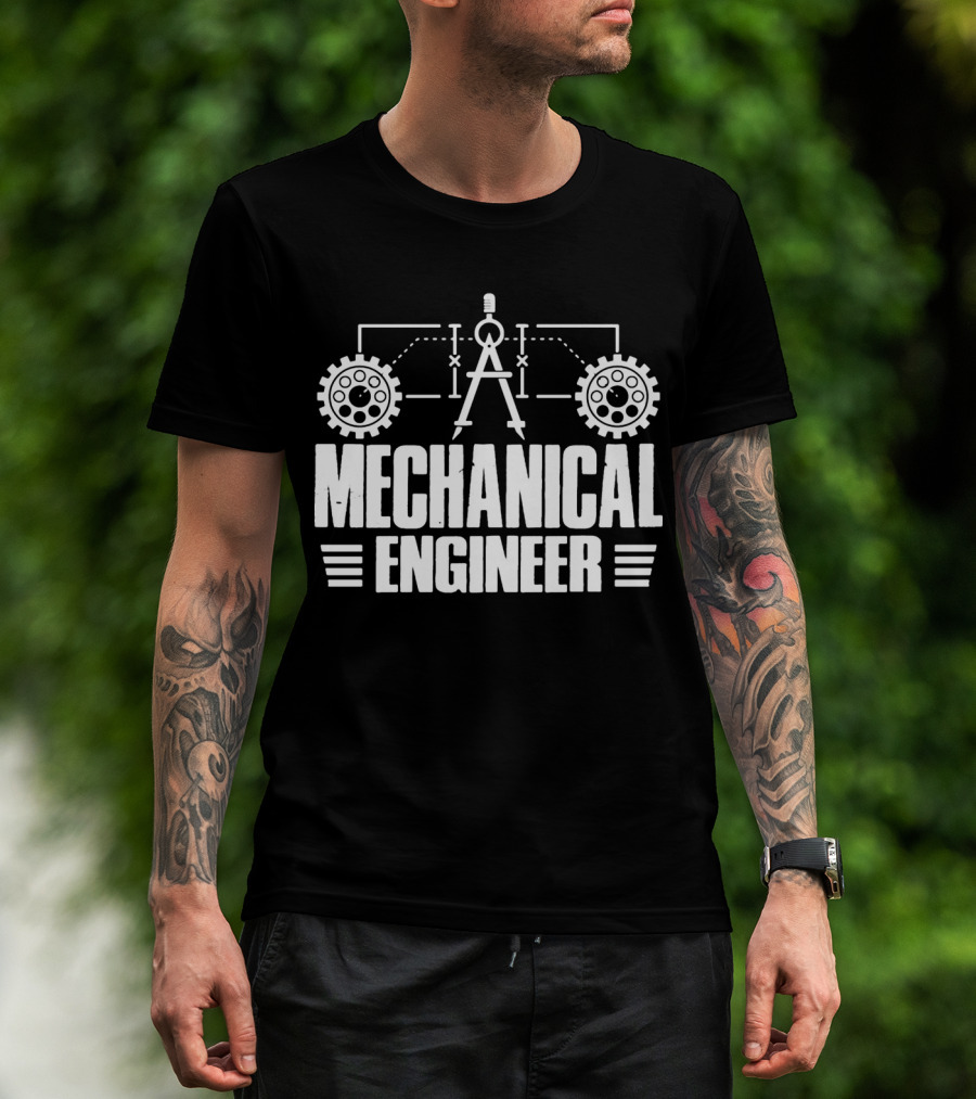 The Mechanical Engineer Gears and Compass T-shirt is designed for everyday wear and a consistent fit. Fabric is pre-shrunk ring-spun cotton with durable stitching. See the size chart below for exact measurements.