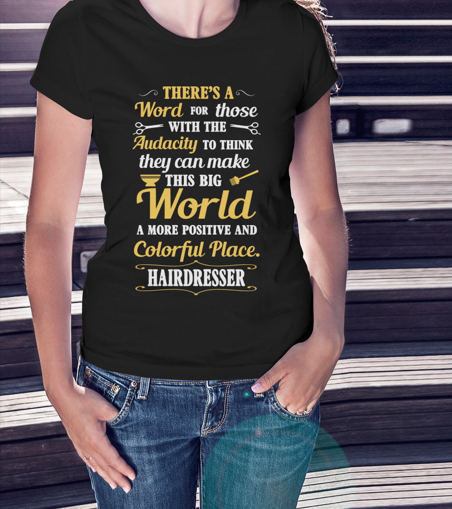 There’s A Word For Those With The Audacity To Think They Can Make This Big World A More Positive And Colorful Place Hairdresser T-Shirt