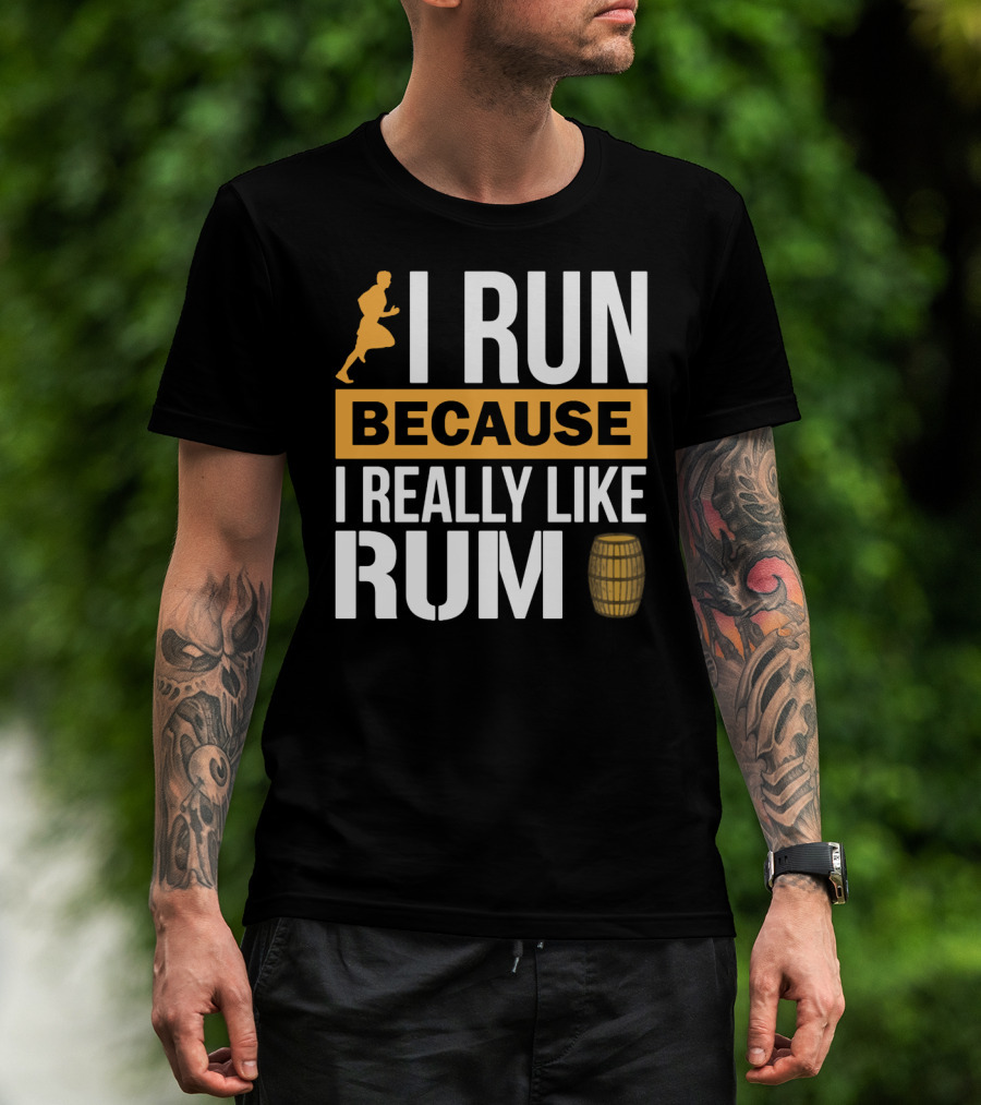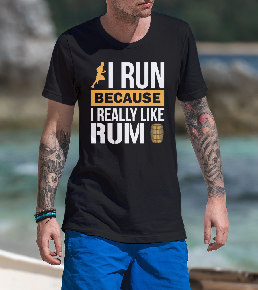 I Run Because I Really Like Rum With Runner And Barrel T-Shirt