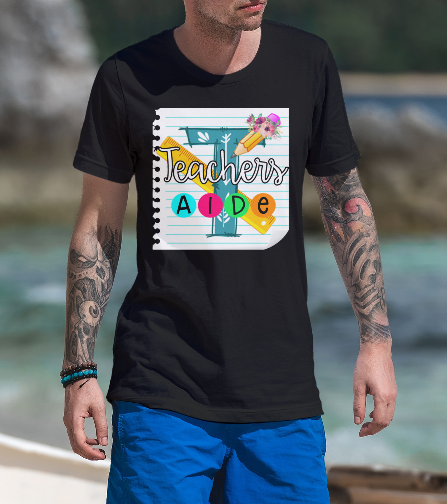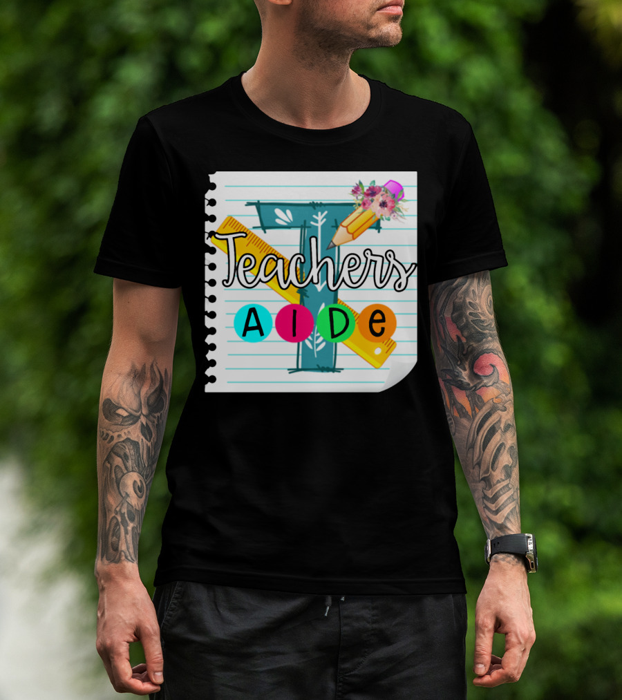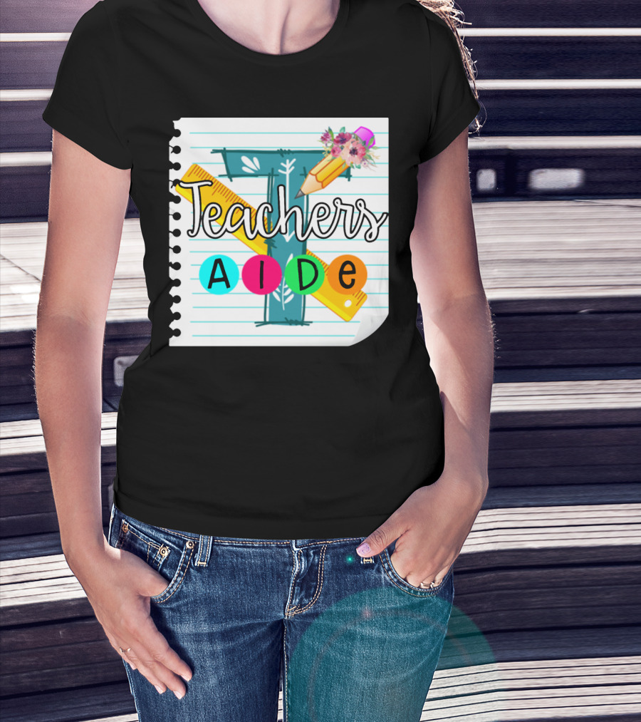 Teacher's Aide Floral Pencil Ruler Notebook T-Shirt