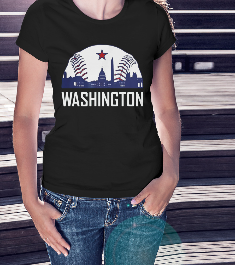Washington DC Baseball Hometown Skyline National Capitol Star T-Shirt