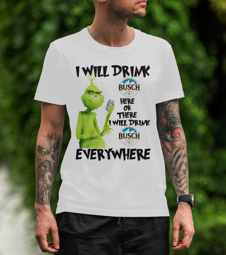 The I Will Drink Busch Light Beer Here Or There I Will Drink Busch Beer Everywhere Grinch T-shirt is designed for everyday wear and a consistent fit. Fabric is pre-shrunk ring-spun cotton with durable stitching. See the size chart below for exact measurements.