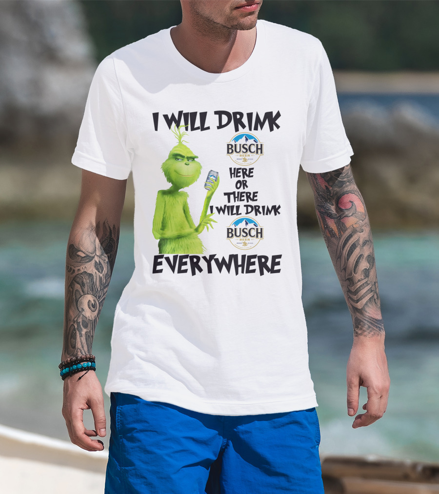 I Will Drink Busch Light Beer Here Or There I Will Drink Busch Beer Everywhere Grinch T-Shirt
