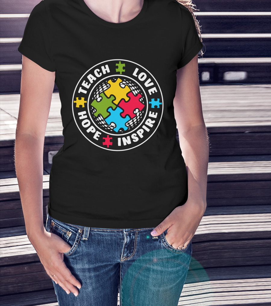 Autism Teacher Special Education Back Teach Love Hope Inspire Puzzle T-Shirt
