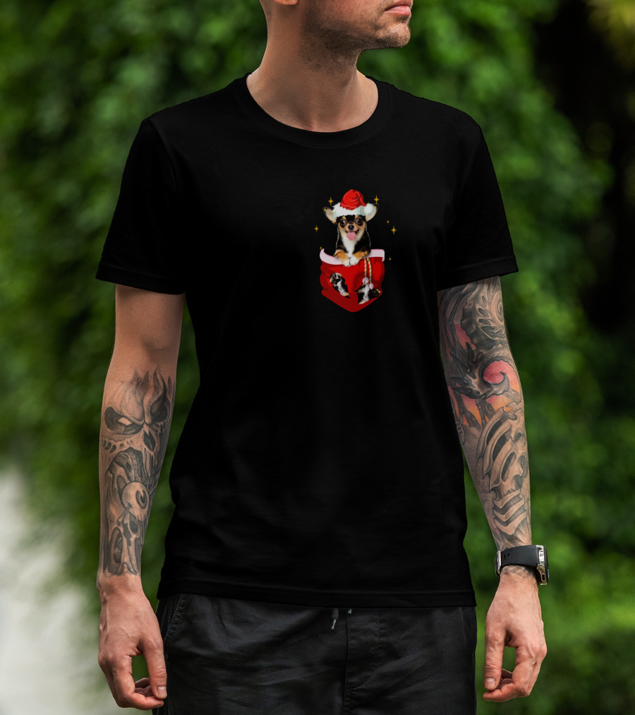 Chihuahua In Santa Hat Pocket With Christmas Sparkles T-Shirt