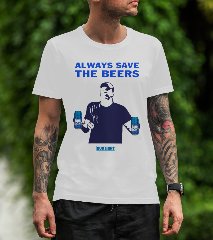 Always Save The Beers Bud Light Baseball Player Can Catcher T-Shirt