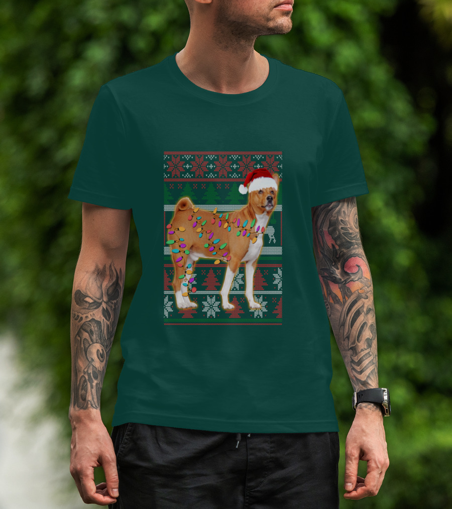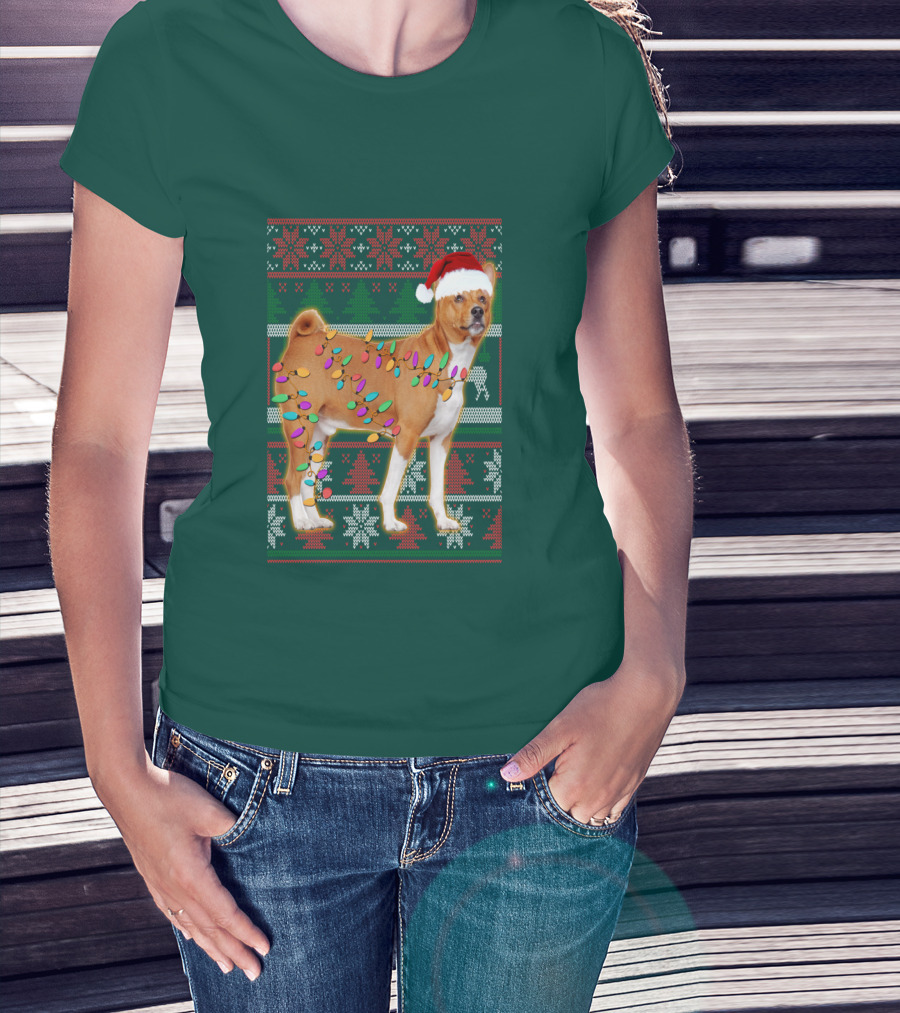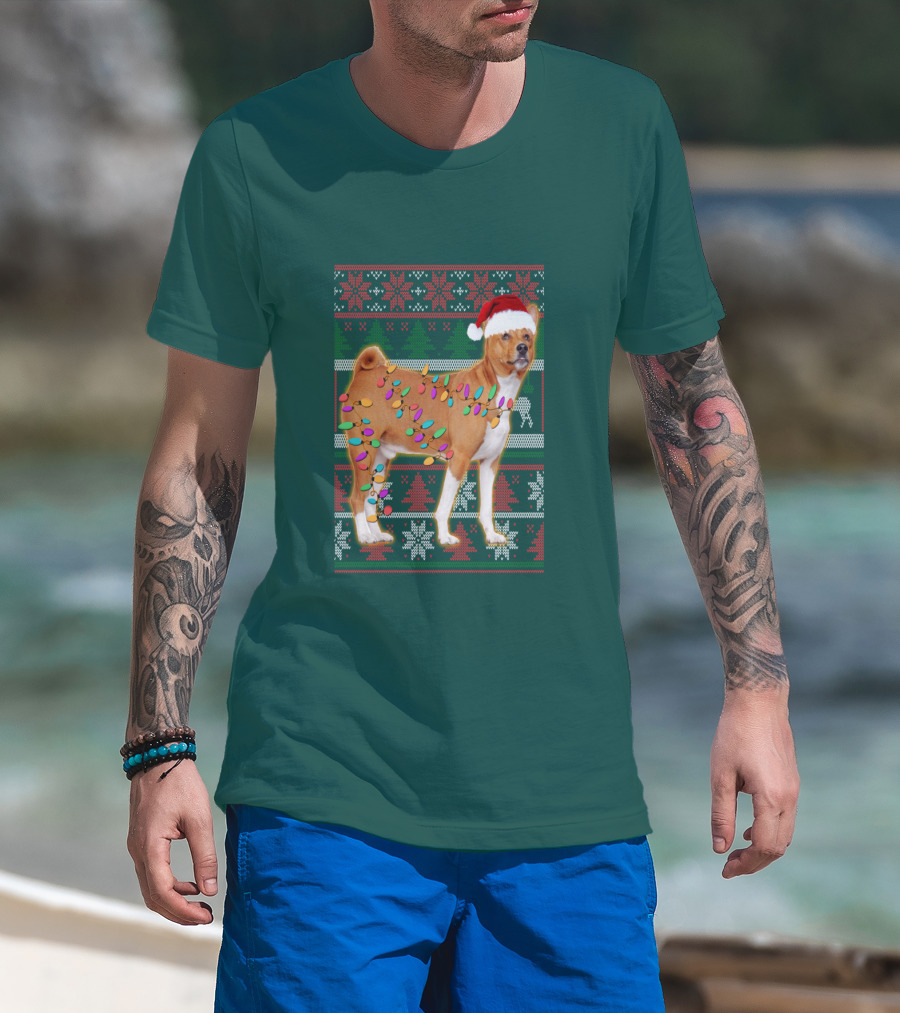 Basenji Christmas Lights Holiday Sweater Dog With Santa Hat T-Shirt