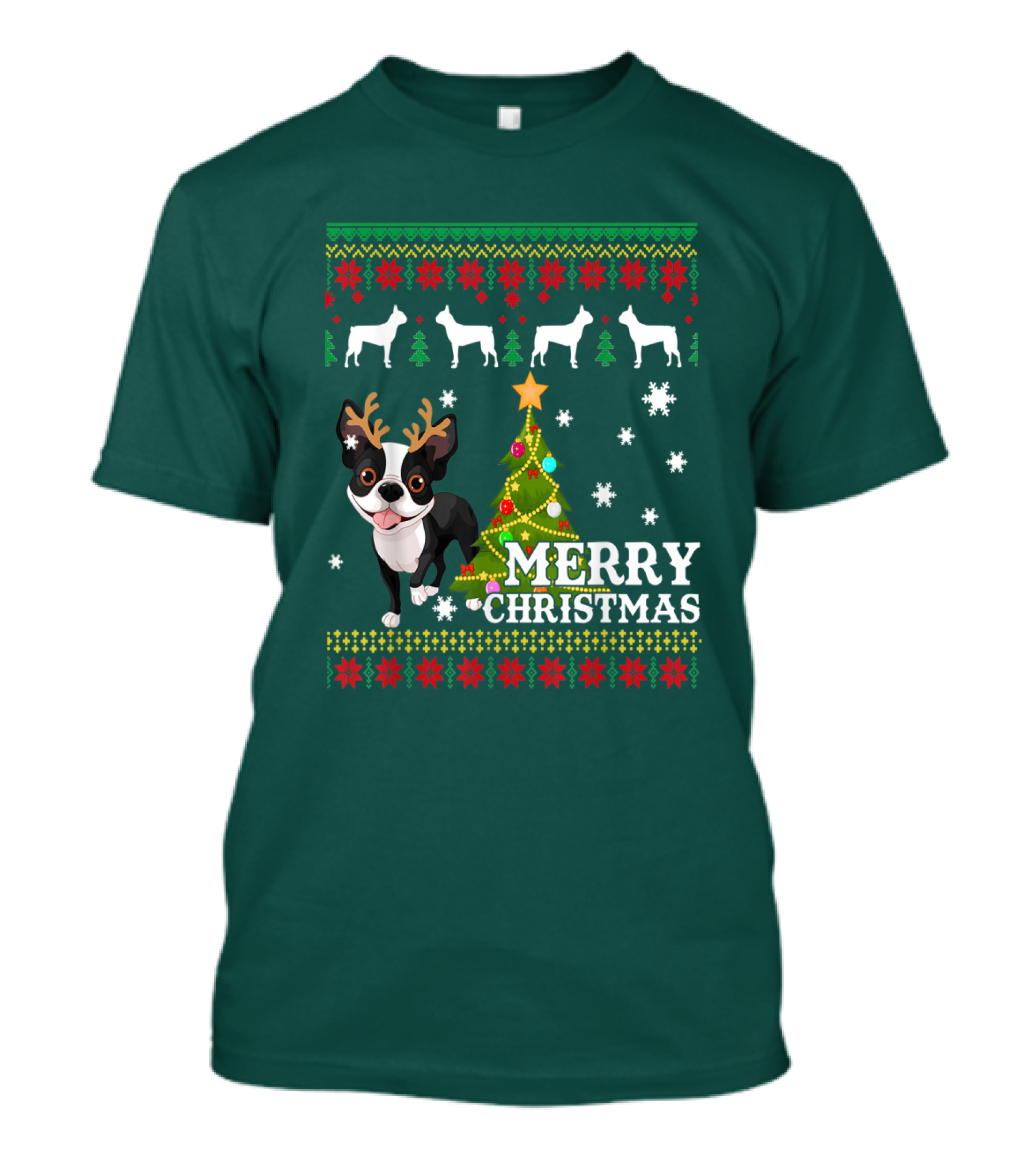 Merry Christmas Boston Terrier Holiday T-Shirt