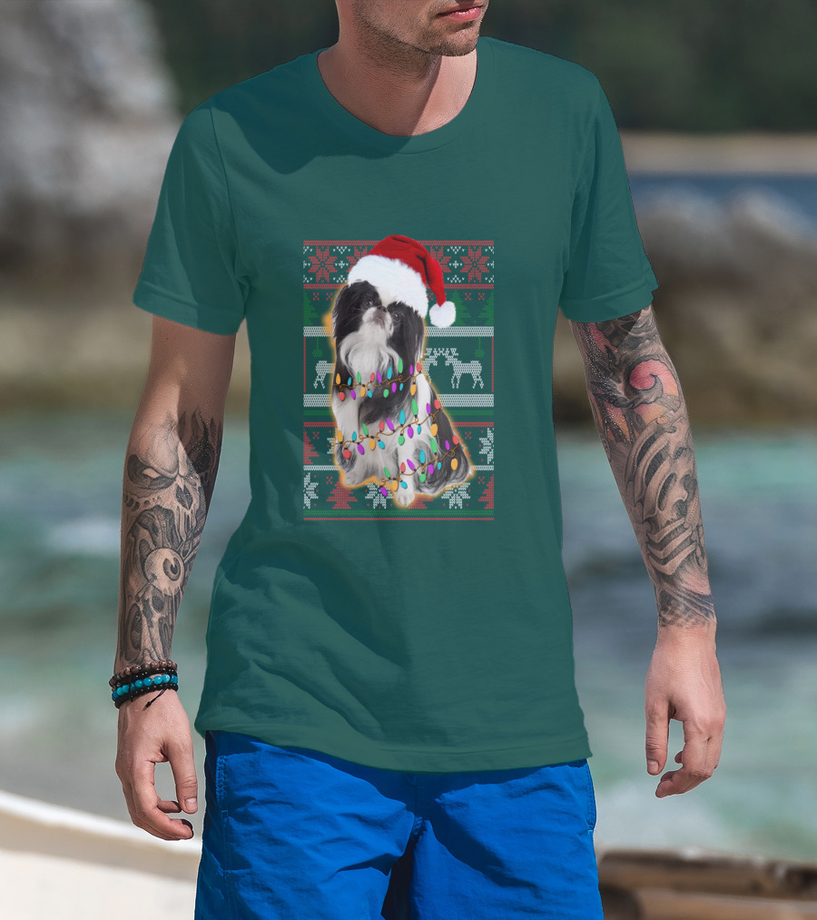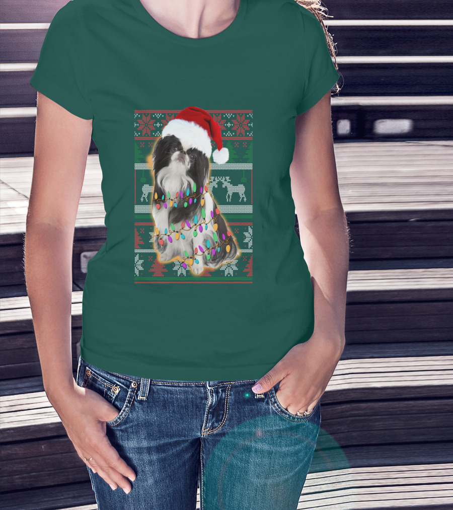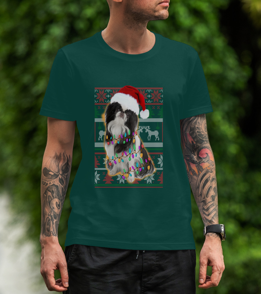 Japanese Chin Christmas Lights Sweater Santa Hat T-Shirt