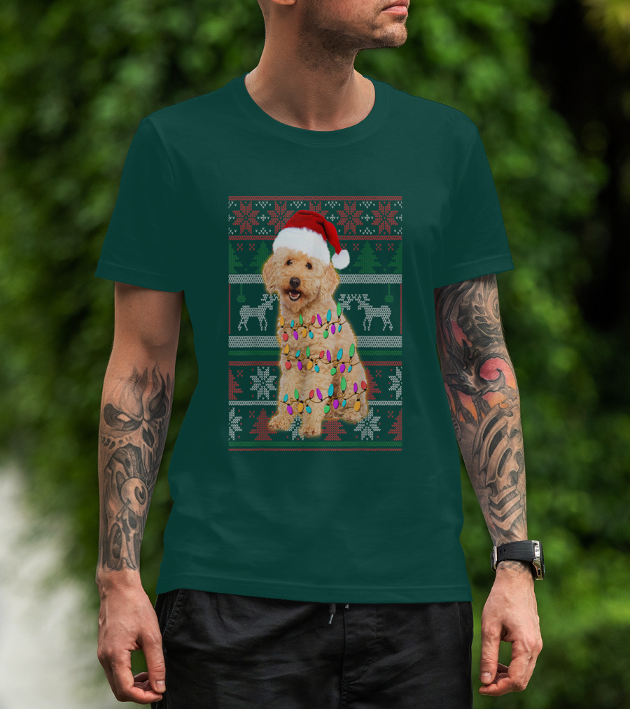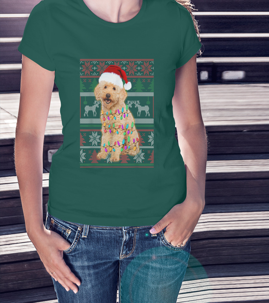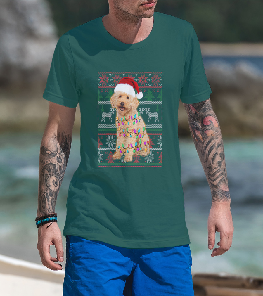 Maltipoo Christmas Lights Santa Hat Festive Holiday T-Shirt