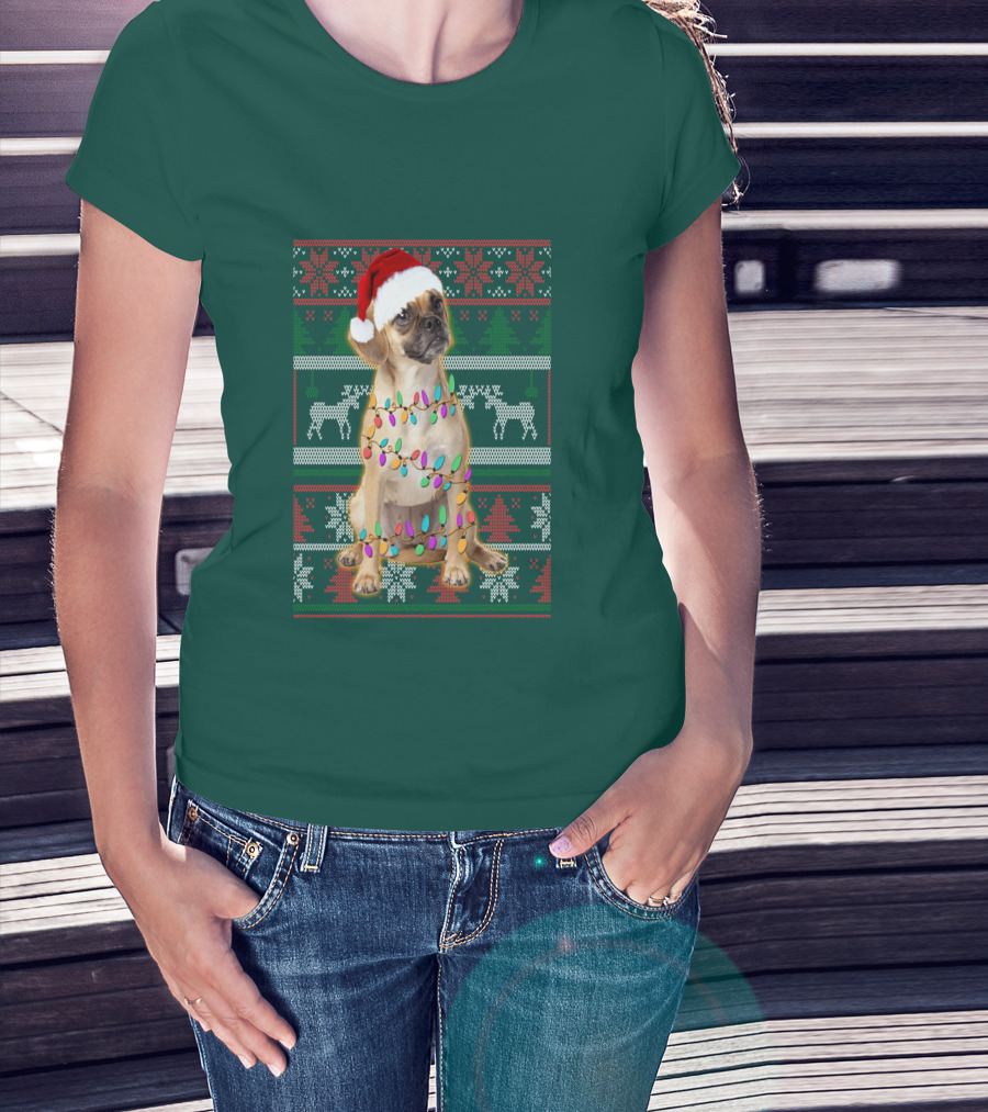 Puggle Christmas Santa Hat With Holiday Lights T-Shirt