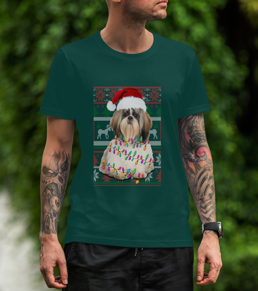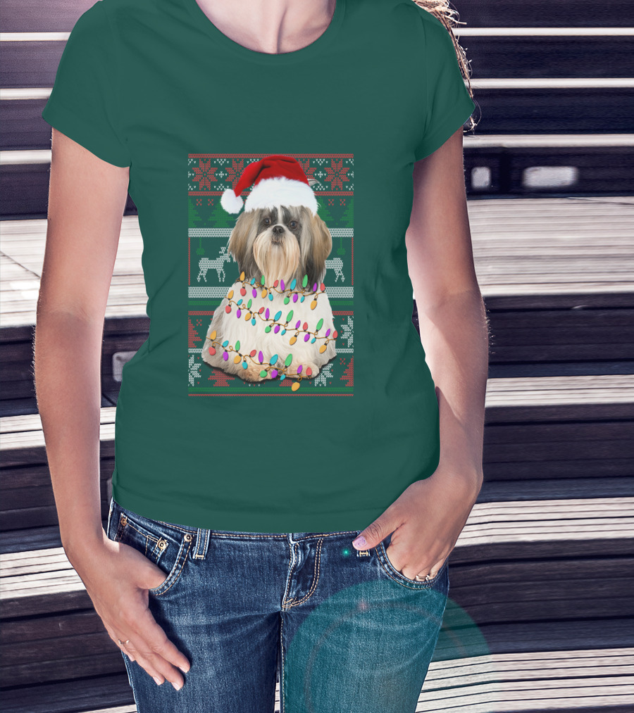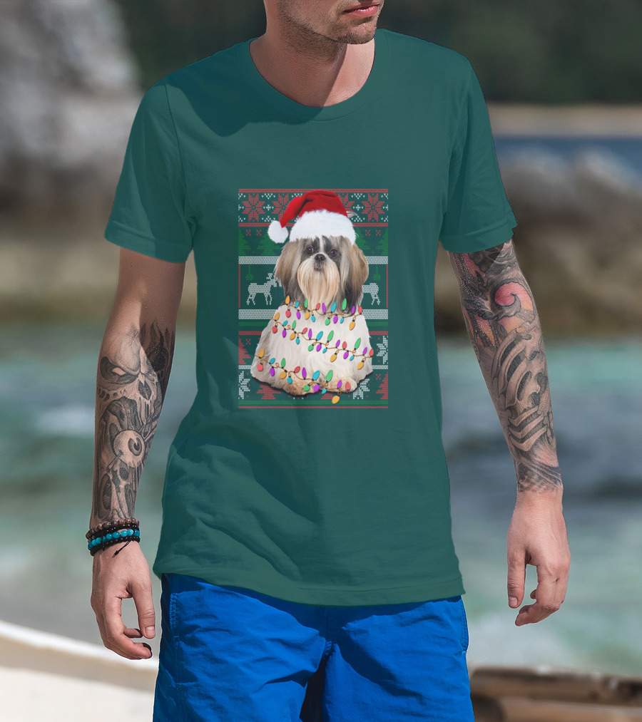Shih Tzu Christmas Lights Santa Hat Holiday T-Shirt