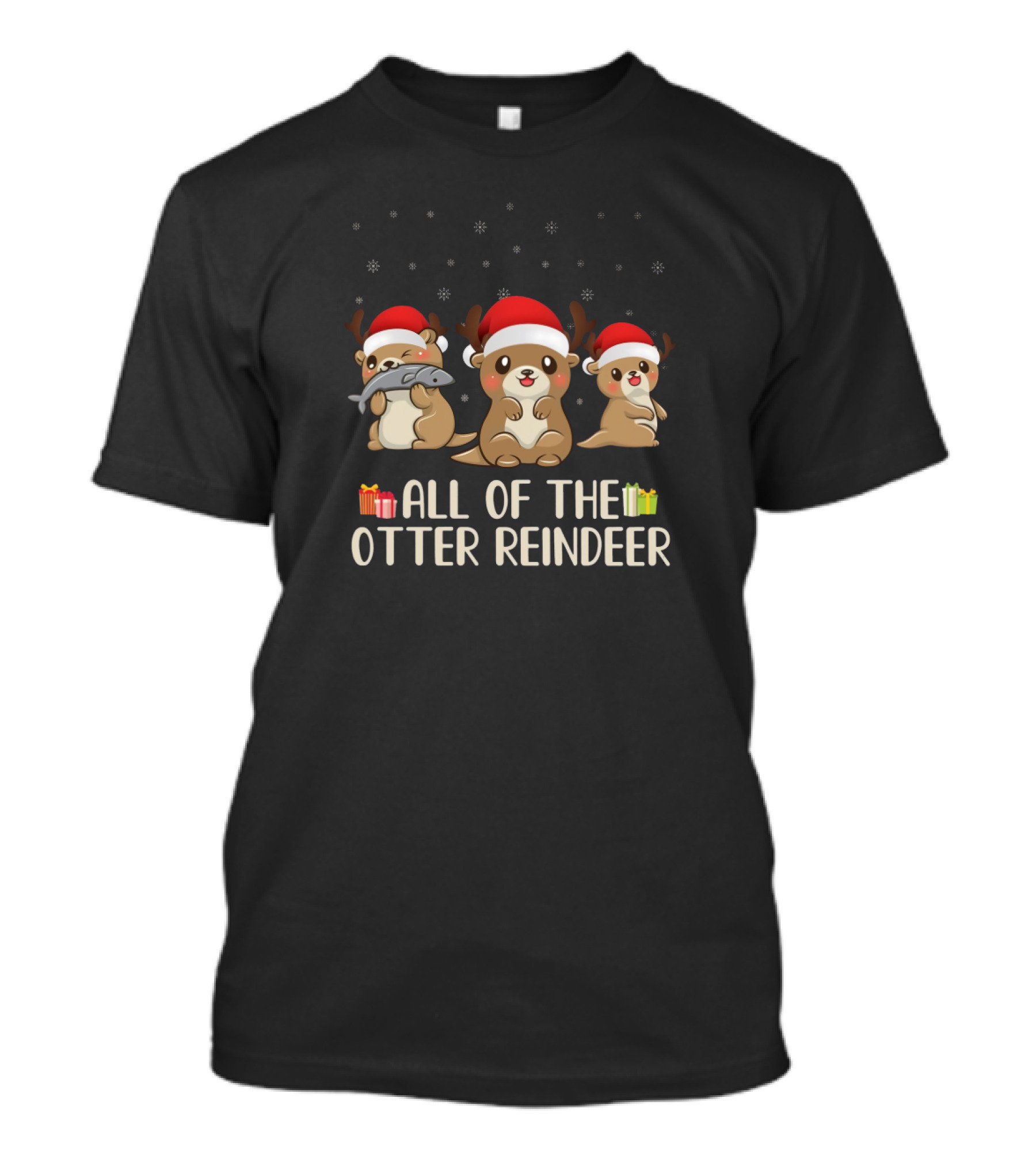 All Of The Otter Reindeer Santa Hats Holiday Snowflakes T-Shirt