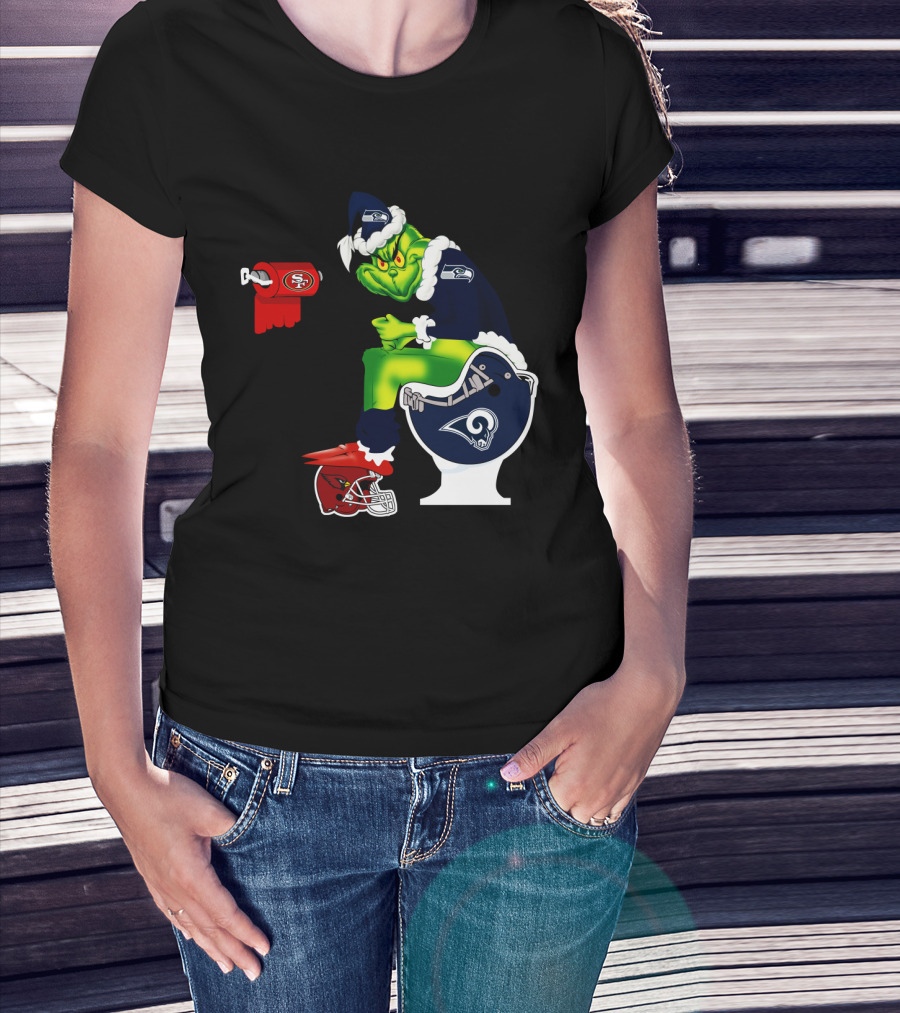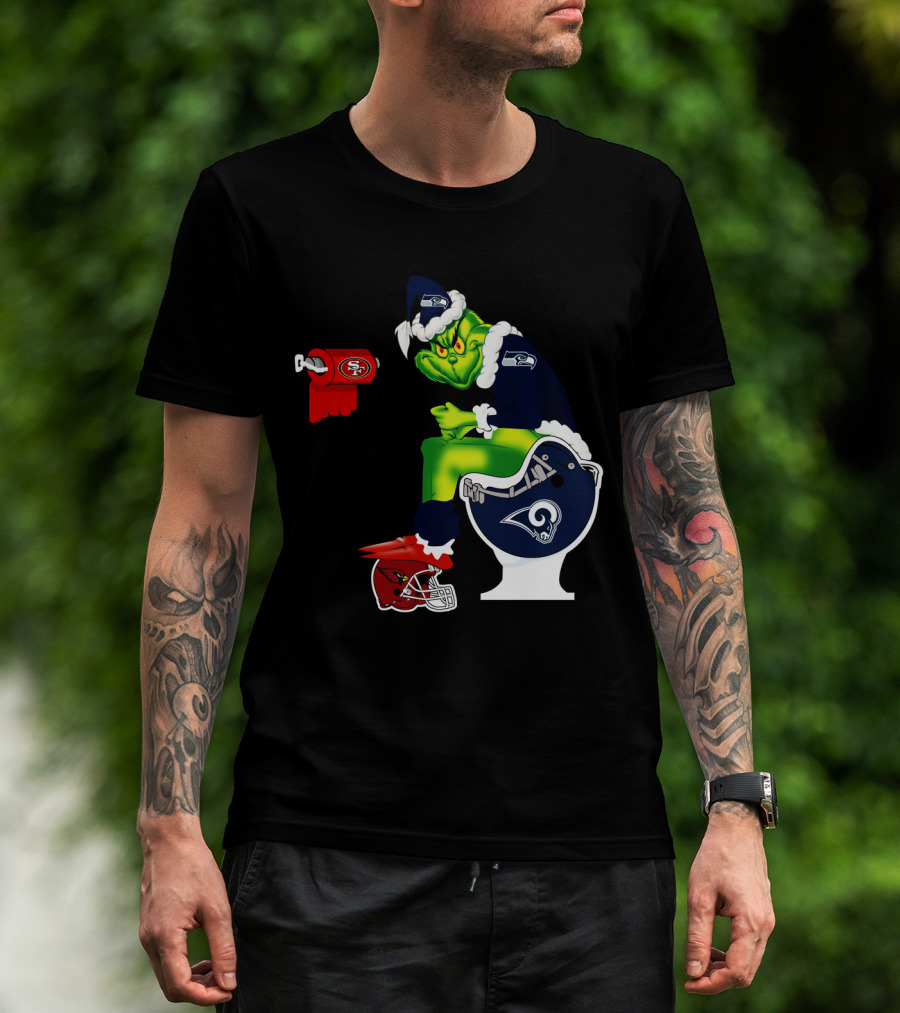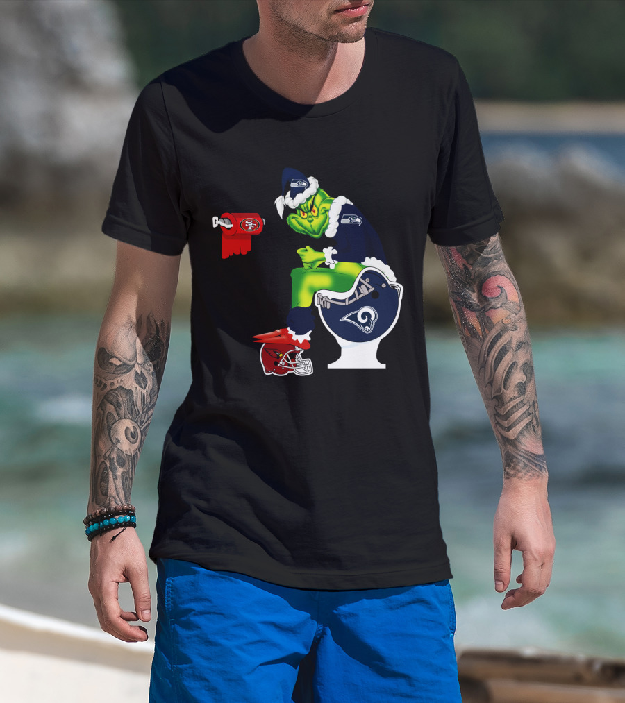 Seahawks Grinch On Rams Toilet With 49ers Toilet Paper And Cardinals Plunger T-Shirt