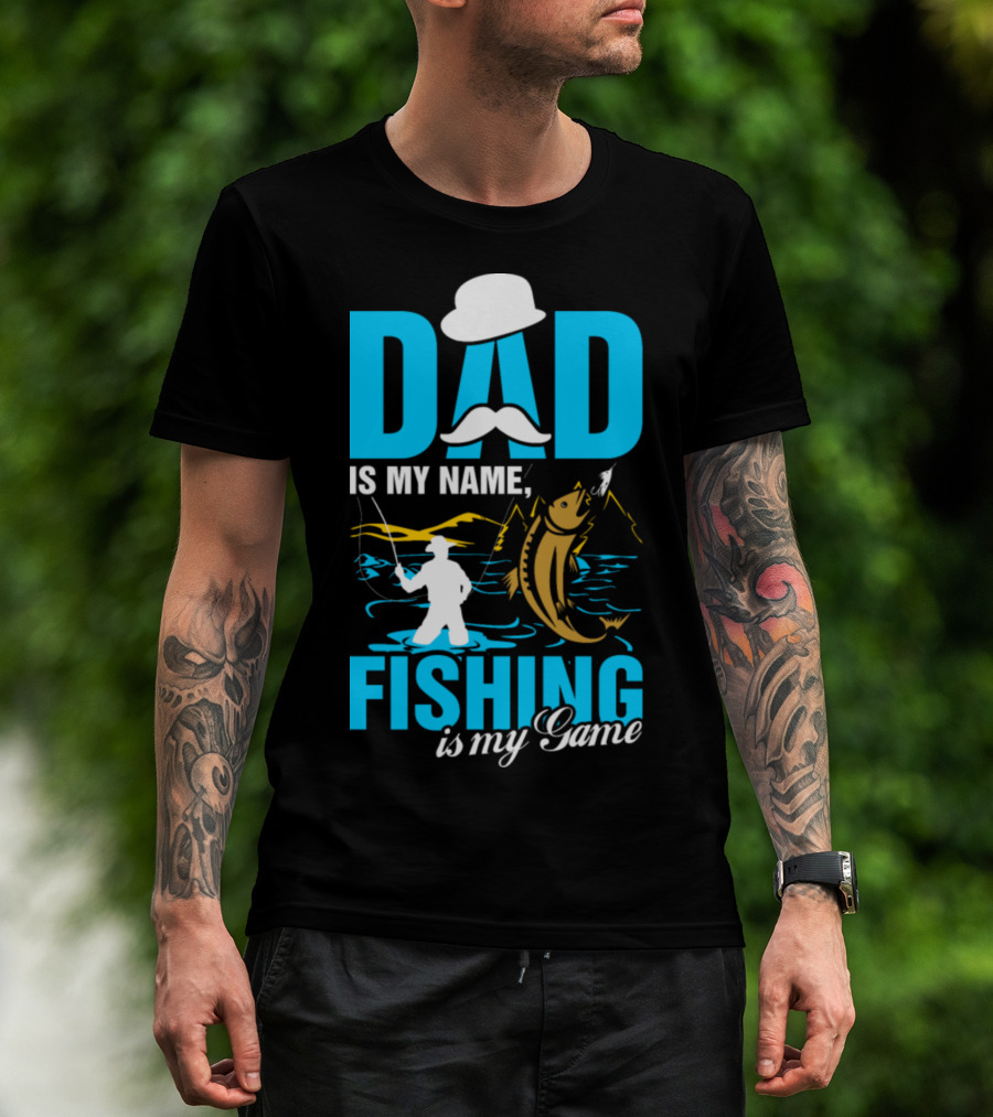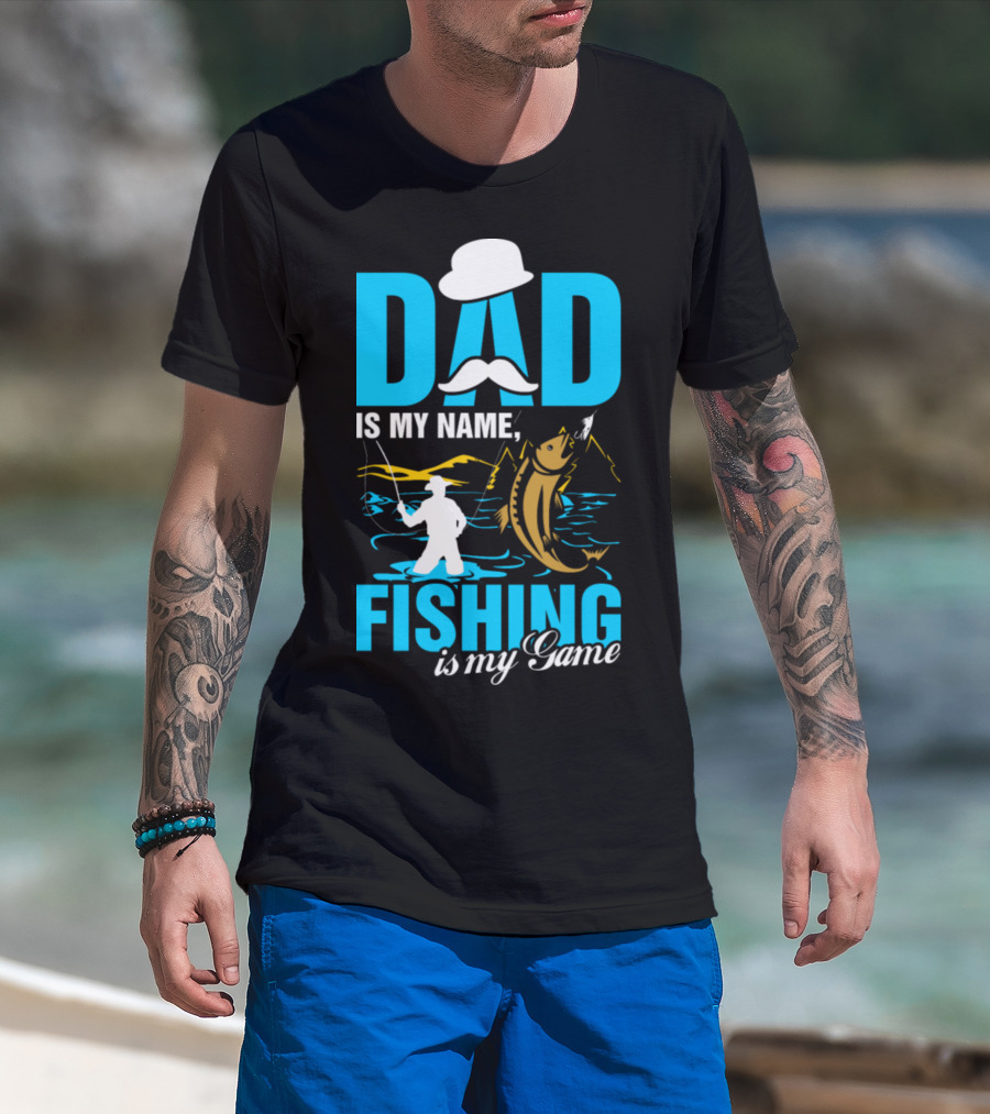 DAD Is My Name Fishing Is My Game Big Catch Angler Scene T-Shirt