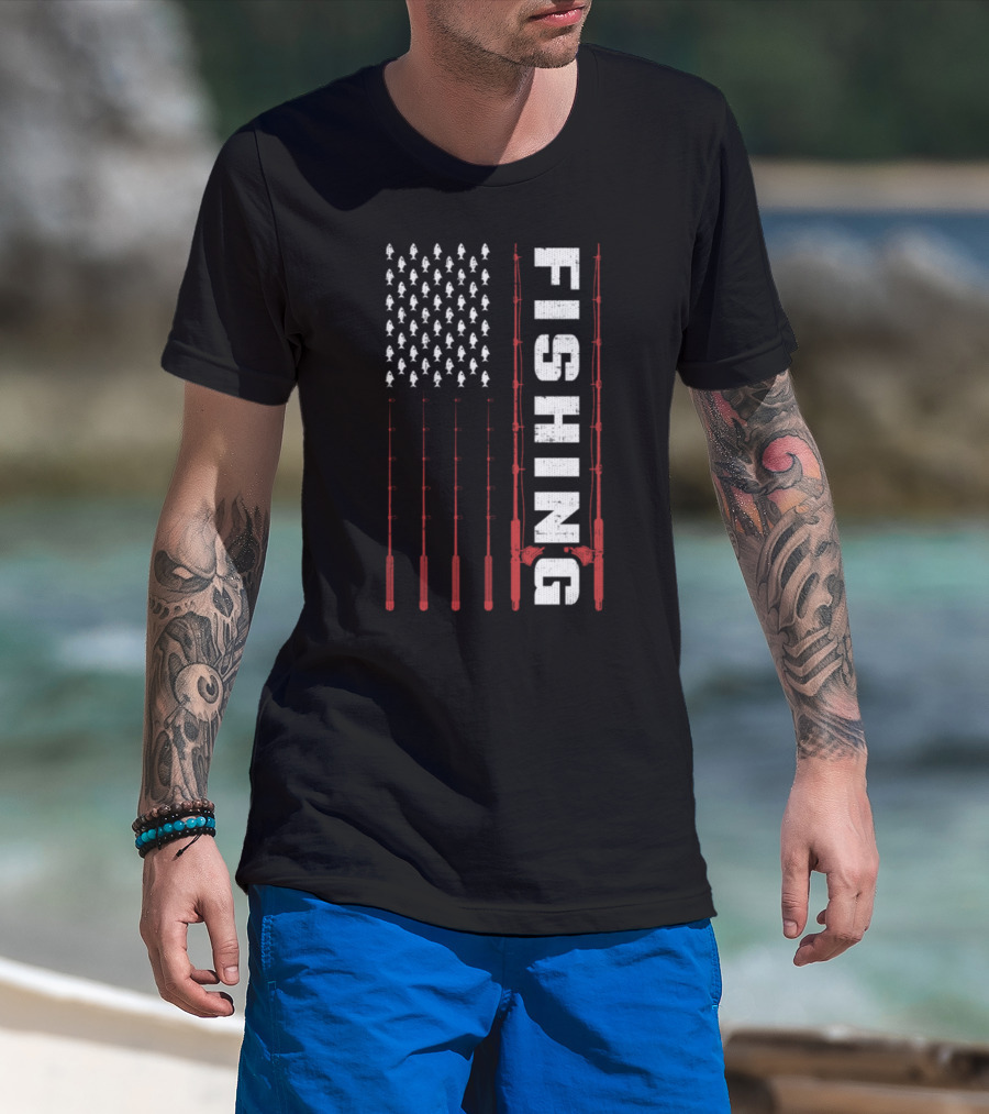 Fishing Flag Fishing Poles And Fish American T-Shirt