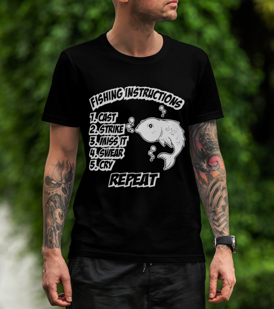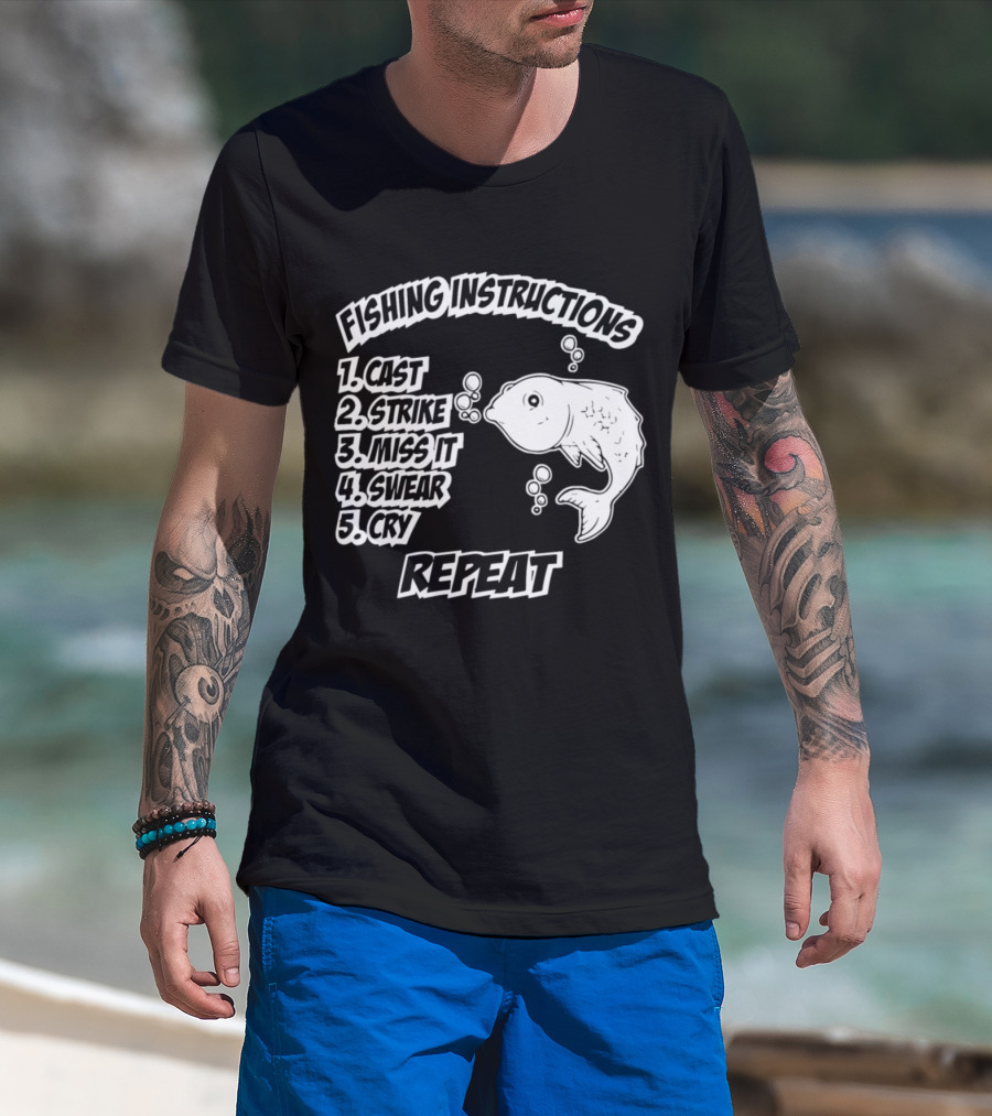 FISHING INSTRUCTIONS CAST STRIKE MISS IT SWEAR CRY REPEAT T-Shirt