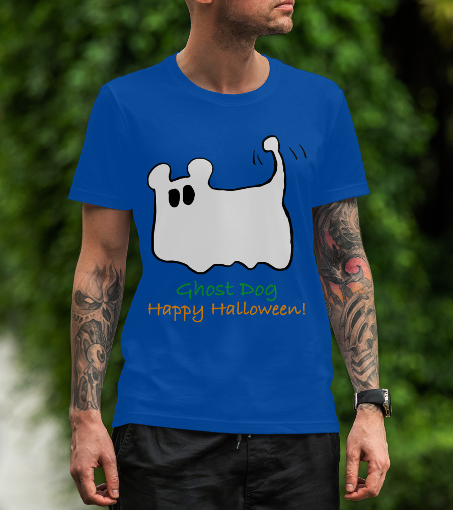 The Ghost Dog Happy Halloween T-shirt is designed for everyday wear and a consistent fit. Fabric is pre-shrunk ring-spun cotton with durable stitching. See the size chart below for exact measurements.