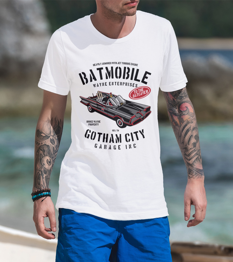 BATMOBILE Heavily Armored Jet Turbine Engine Wayne Enterprises Gotham City Garage Inc Bruce Wayne Property T-Shirt