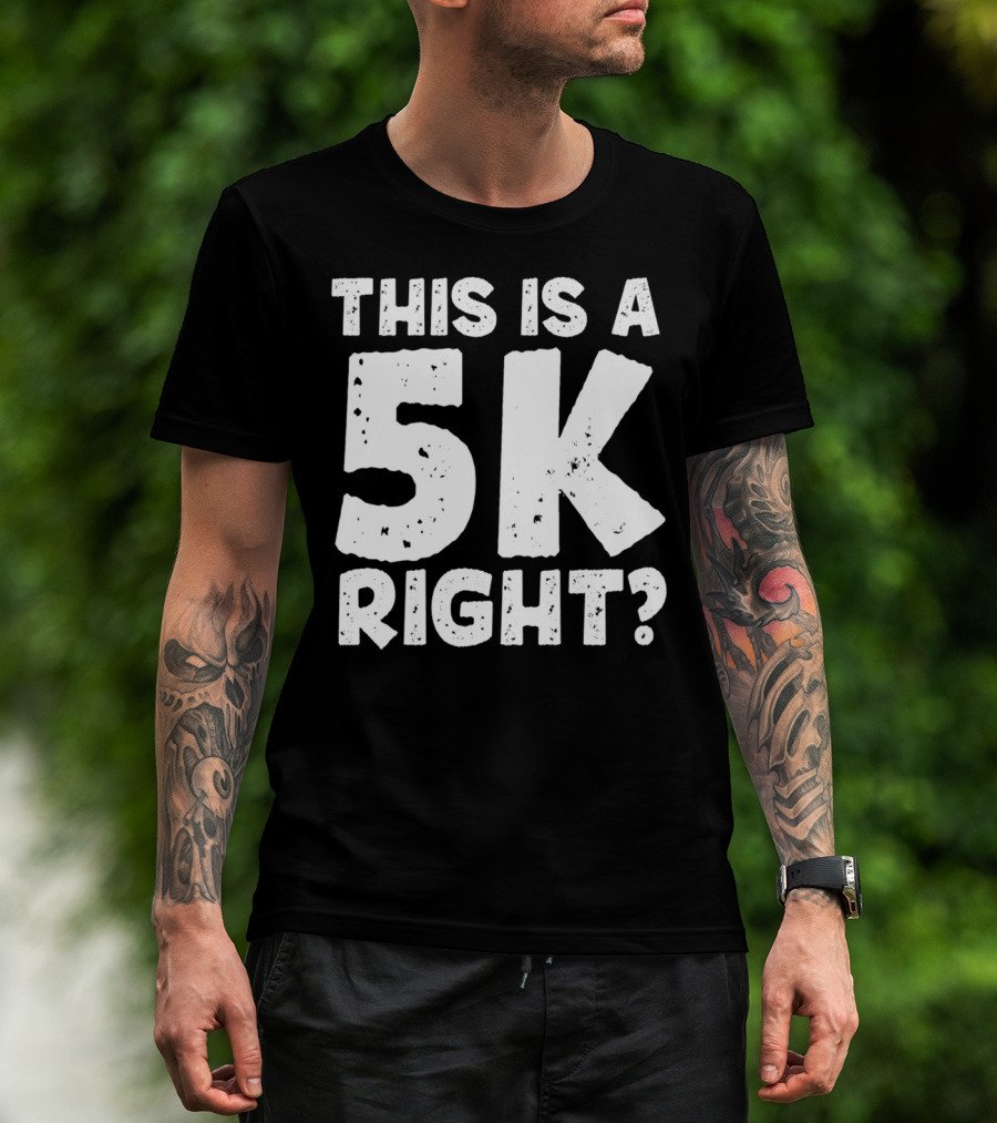 The This Is A 5K Right Question T-shirt is designed for everyday wear and a consistent fit. Fabric is pre-shrunk ring-spun cotton with durable stitching. See the size chart below for exact measurements.