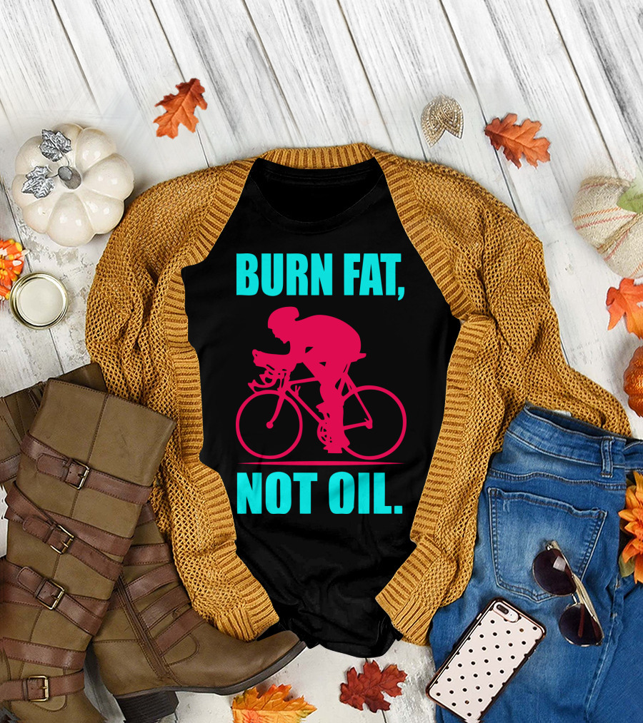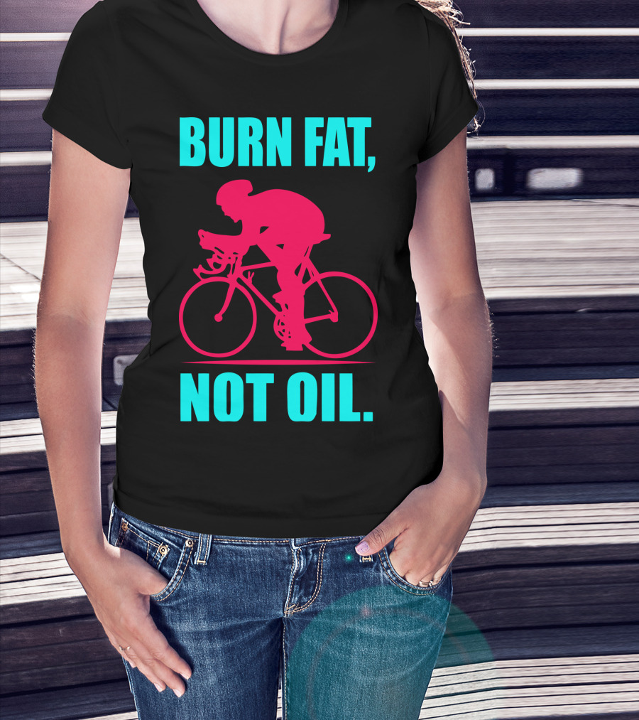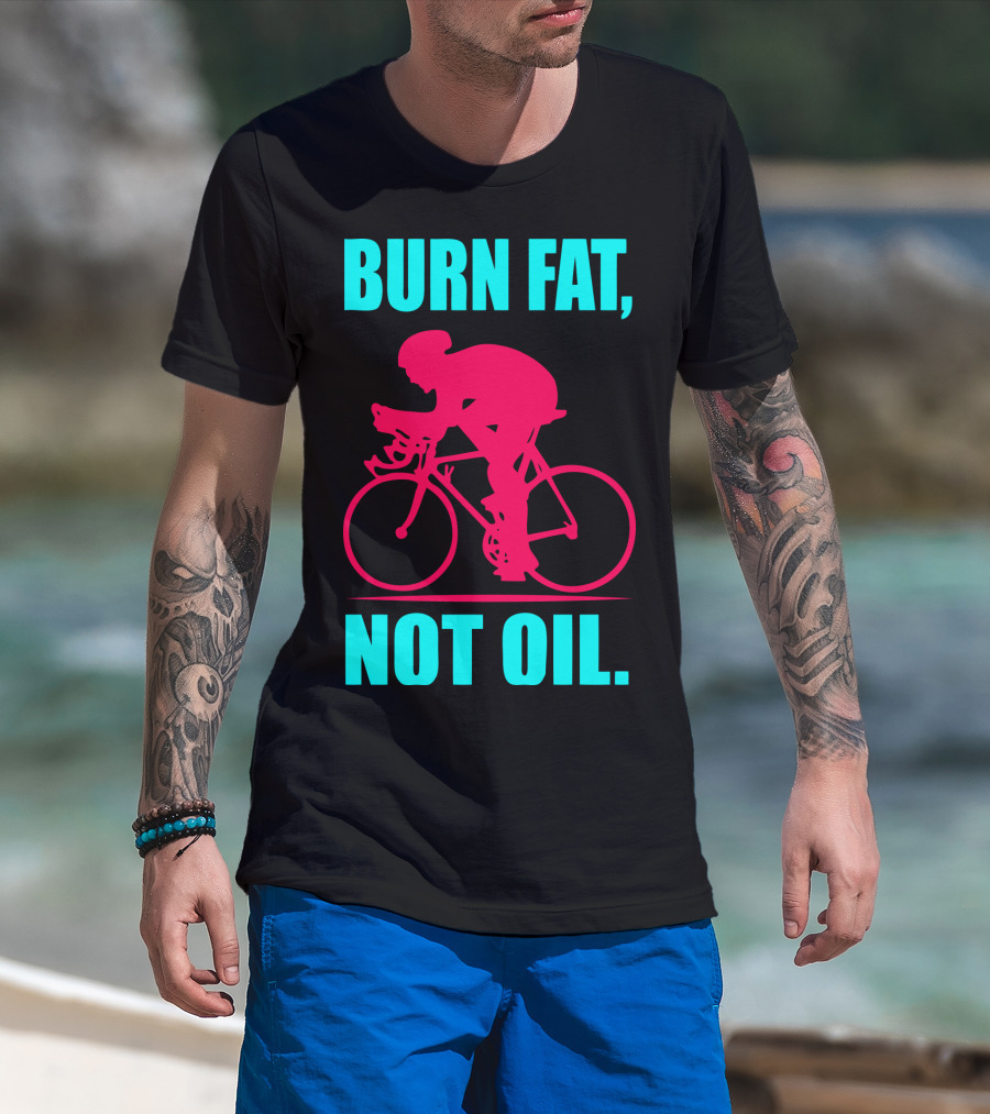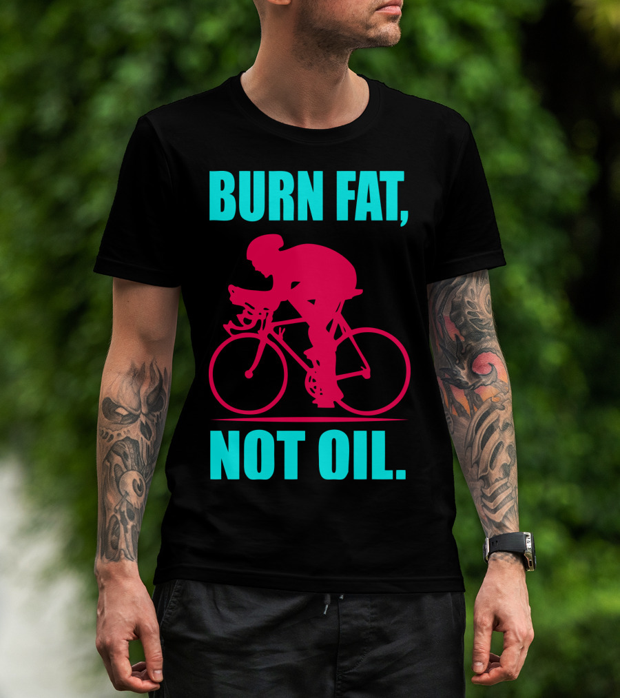 The Burn Fat Not Oil Cycling Man T-shirt is designed for everyday wear and a consistent fit. Fabric is pre-shrunk ring-spun cotton with durable stitching. See the size chart below for exact measurements.
