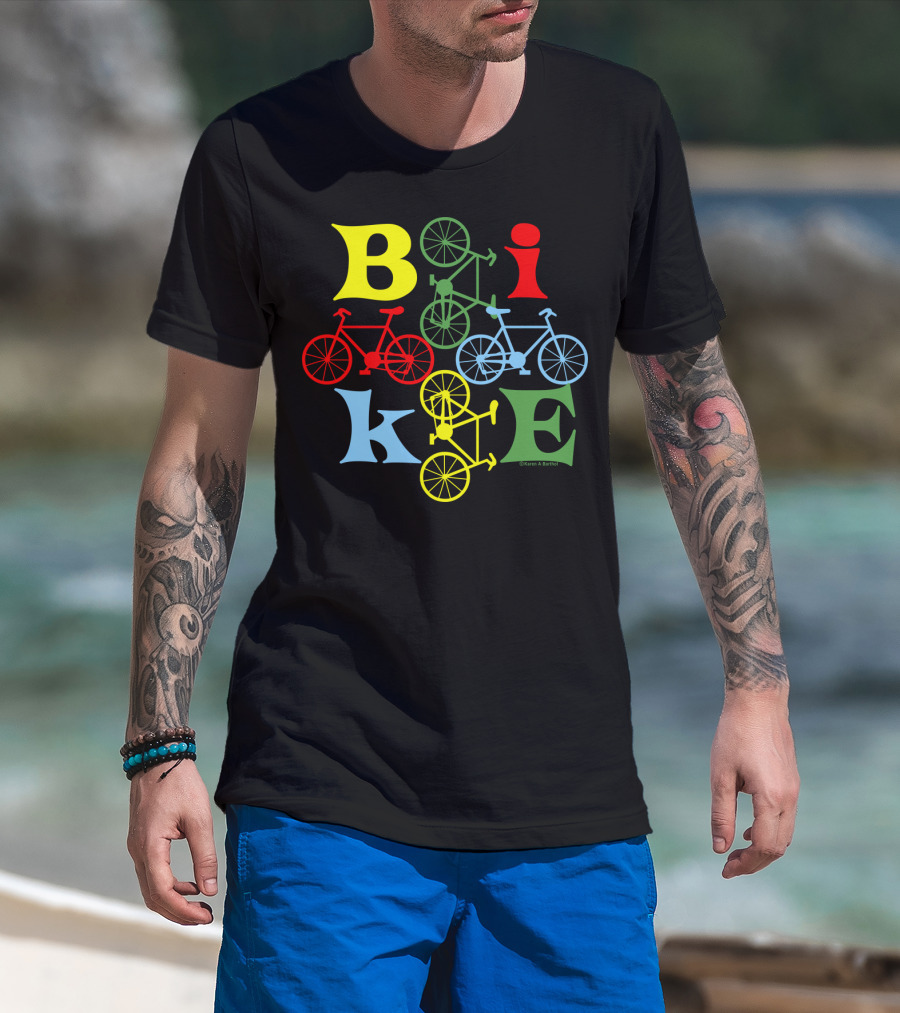 The Bike Four Colorful Styles T-shirt is designed for everyday wear and a consistent fit. Fabric is pre-shrunk ring-spun cotton with durable stitching. See the size chart below for exact measurements.