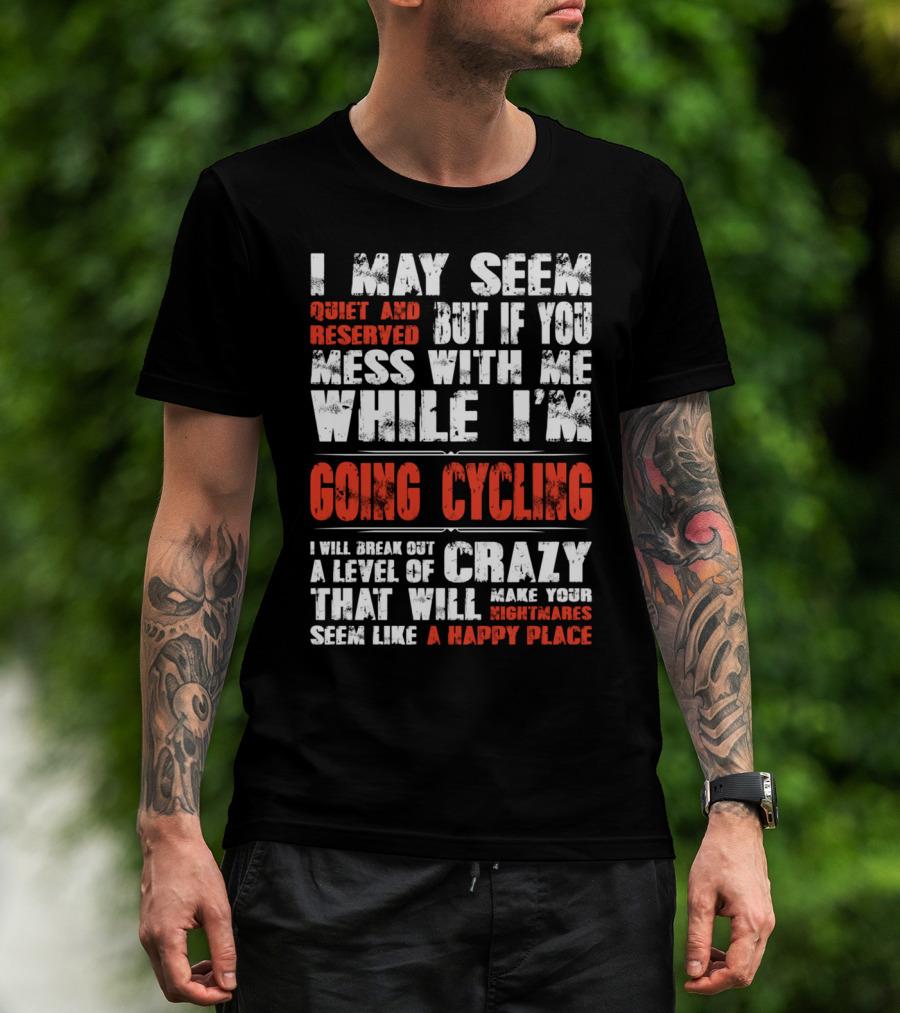 I May Seem Quiet And Reserved But If You Mess With Me While I'm Going Cycling I Will Break Out A Level Of Crazy That Will Make Your Nightmares Seem Like A Happy Place T-Shirt